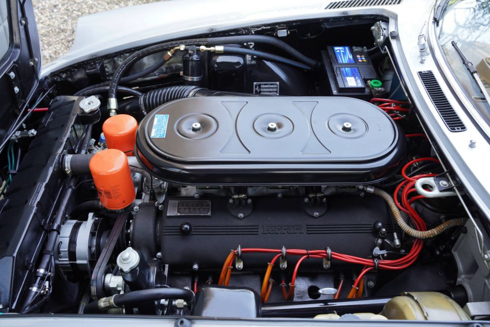 The first owner in Belgium must have been incredibly impressed when this Ferrari 365 was first received by the well-known Ferrari dealer Garage Franchorchamps in Belgium in June 1970. Admittedly, the owner had excellent taste. Not only because of the brand and model but also because of the colour scheme. The Ferrari Classiche Certificate tells us that it is the Argento Auteuil colour with black leather upholstery.