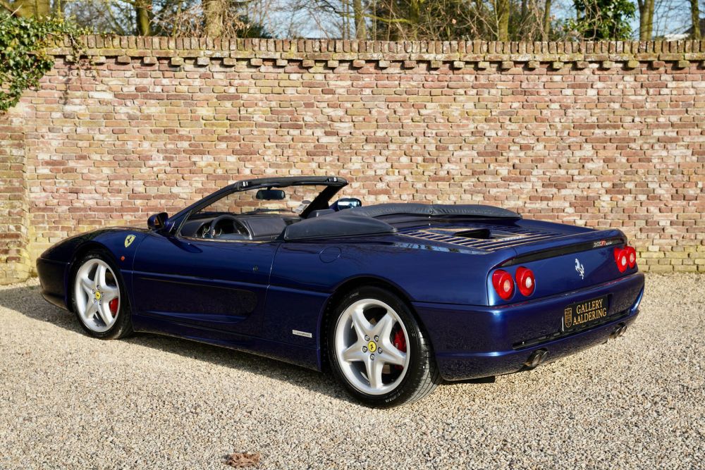 The Ferrari F355 Spider is the perfect example of the saying that fine wine gets better with age. And at Gallery Aaldering, we believe this holds true for this remarkable model. A stunning machine, with a color combination that makes it truly stand out—Blu Tour de France, perfectly complemented by a matching blue soft top. We always say the top should be down, but with this car, even with the top up, it’s a beauty to behold!