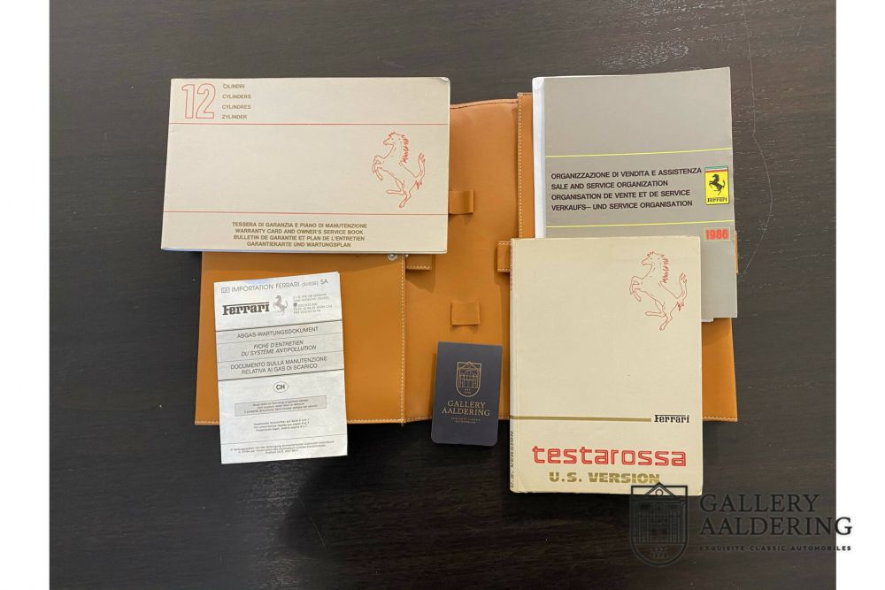 This Ferrari comes with its original Ferrari pouch, which includes the original manual and service booklet. Additionally, various invoices show, besides the service booklet, that this Testarossa was maintained by Ferrari dealers, and recent maintenance invoices are available. The original brochure of the car is also still present, contributing to the authentic charm and collectible value of this Testarossa. The maintenance and care for this car are clearly documented, making it not only beautiful to look at, but also ready to be driven and enjoyed.