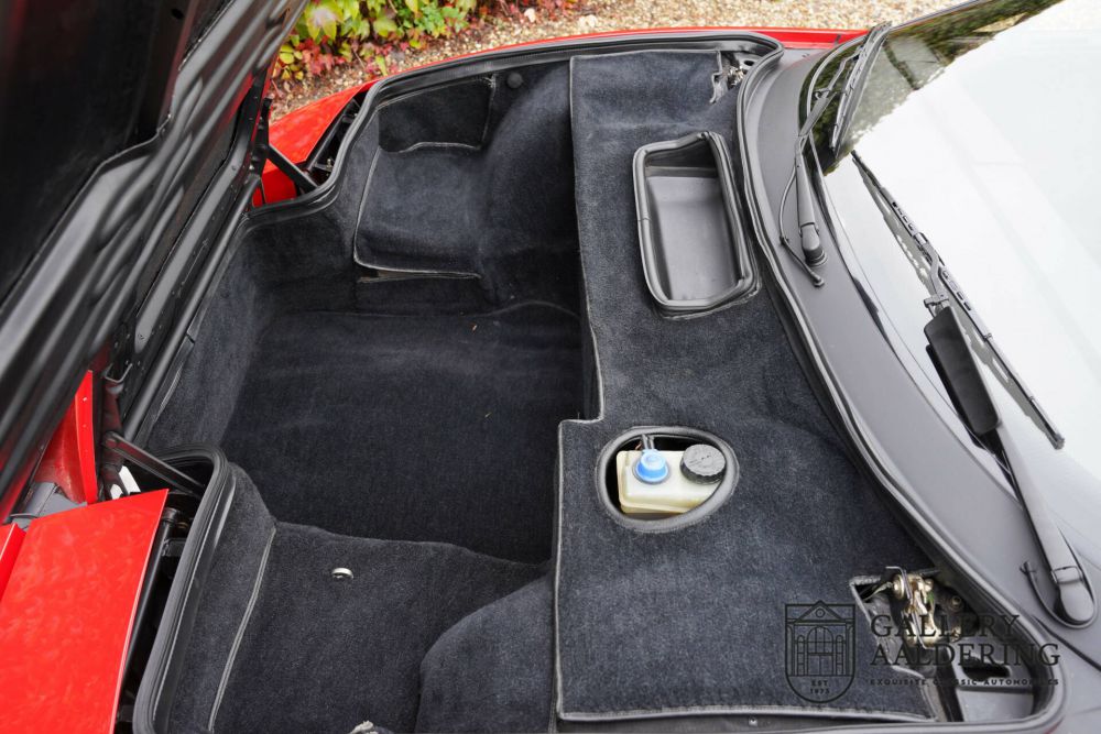What immediately makes this Testarossa stand out is its stunning Rosso Red paint, perfectly complemented by the completely black interior. The leather on the seats, carpets, and dashboard is in beautiful condition and still feels supple, while the sleek bodywork and very nice paint highlight the timeless elegance of this Ferrari. All details, such as the iconic dashboard gauges and the original wheels, are in excellent condition, clearly showing the high-quality maintenance and care with which, this car has been treated.