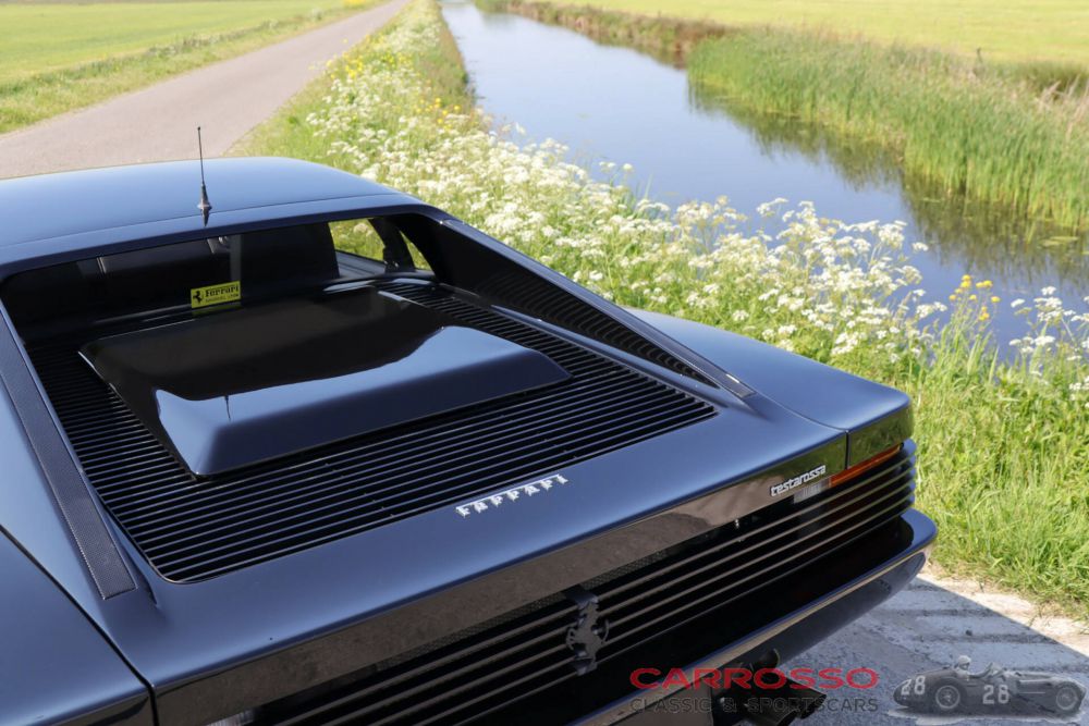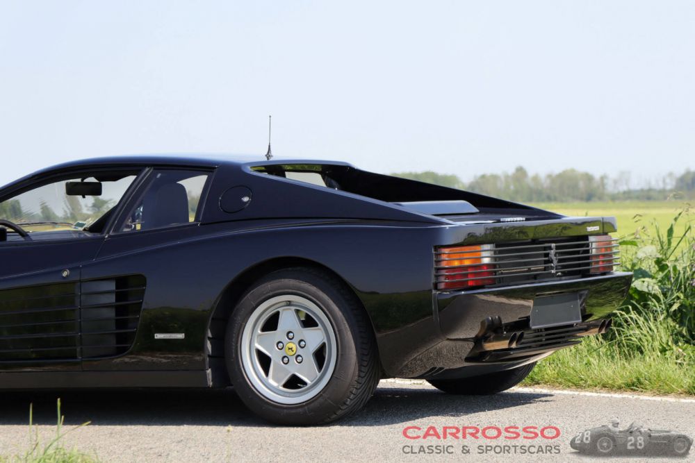 The Ferrari Testarossa: who doesn't know this legendary icon? This example is in a beautiful and very well-maintained condition. Recently (2021), at a mileage of 55,934 kilometres, a major service was carried out in which the timing belt was replaced and new tyres fitted (total amount over € 9,000). The car was also recently partly repainted, which shows off its beautiful deep black solid colour to fantastic effect.