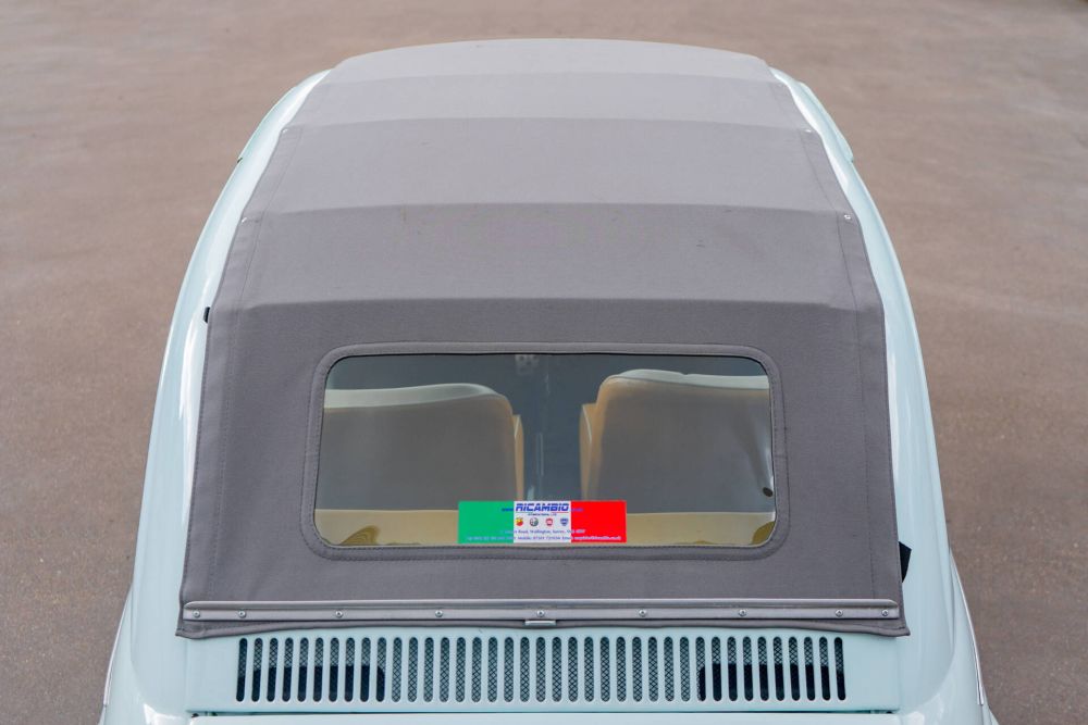 This FIAT 500D Trasformabile was sold new in Italy in 1964. It arrived in England in 2015, where it participated in several classic car events—including the London to Brighton run—which are well-documented. The current owner, a dedicated collector of classic cars, had been searching for one just like this for some time. When it became available in 2019, they seized the opportunity. When not in use, the car has been carefully stored in a heated garage alongside other classics and only driven on dry, salt-free days.