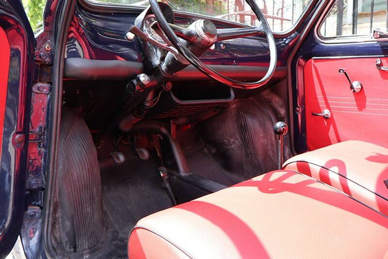Toit ouvrant, couleur ext. bleu marine Code couleur FIAT 456 Intérieur simili rouge type moteur 126A5000 Essence, 3 CV