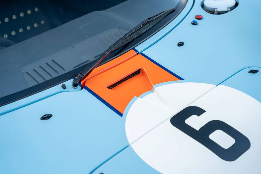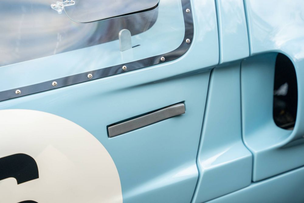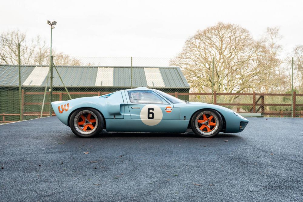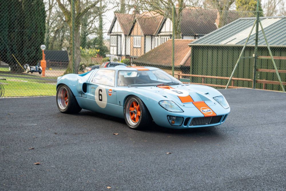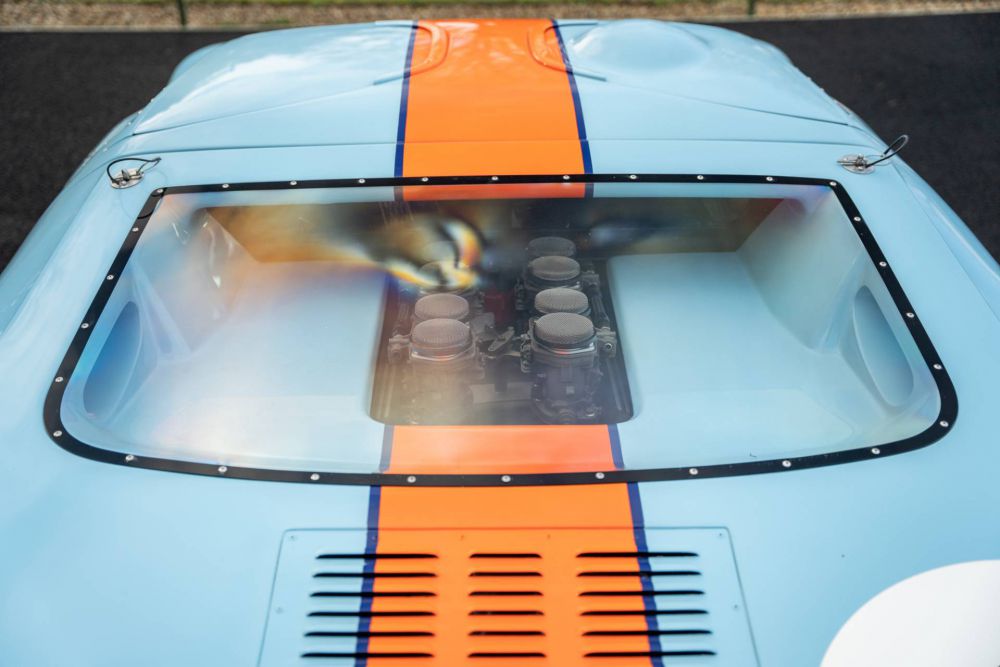 This superb 1965 Ford Tornado GT40 Replica is a reconstruction of the rare Mirage GT40 and is of the highest specification. In the 1960's, Mirage built 3 original GT40 lightweights, the most famous of which was the one driven by the late Steve McQueen. In its debut at Spa, in May 1967, the legendary endurance racer Jacky Ickx and the Flying Dentist, Dr Dick Thompson, finished first overall. It was the first win for any car in this colour and livery. The original car sold in 2012 for a record $11million at RM Auctions. It is finished in powder blue and marigold with Mirage GT40 Gulf livery. Powered by a superb Ford 302 V8 engine. Receipts show the build by EDA that include Edelbrock aluminium performance heads and a bundle of snakes exhaust system. Furthermore, there are 4 sets of twin choke down draft webber carburettors and special inlet manifold. Featuring knock-on alloy wheels with spinners and lock pins. There is a built-in fire extinguisher system and air conditioning. Additionally, twin polished fuel caps for the twin fuel tanks with twin gauges. Rare removable door tops enable open top motoring! Inside sees GT40 style seats, correct dashboard layout, classic gauges, Willans harness seatbelts and a GT40-style steering wheel. Chrome bullet mirrors complete the stylish look. All in all, this 1965 Ford Tornado GT40 Replica is a stunning recreation of a very rare car.