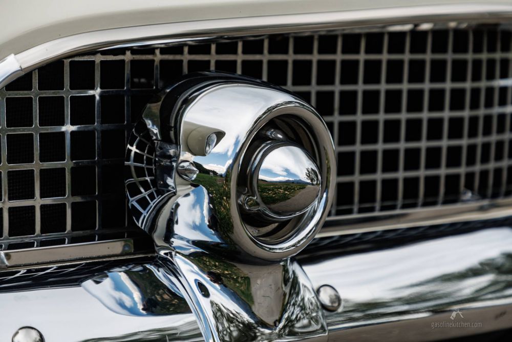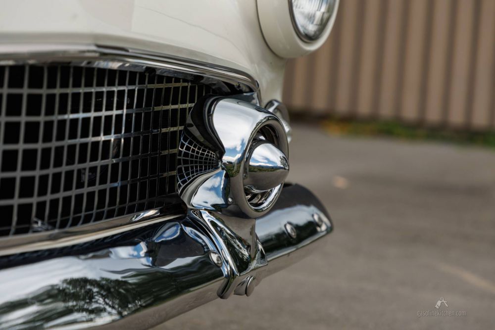 In diesem speziellen Fall hat man dem Innenraum bei der Restauration jene Aufmerksamkeit geschenkt, welche man 1956 schon im Werk auf dem Zeichenbrett hatte. Alles ist so, wie es damals bei der Bestellung geordert wurde. Und es ist auch alles so, wie es damals aus der Halle gerollt ist, alle Schalter und Armaturen leuchten hell, jedes Ding ist an seinem Platz und verrichtet seine Funktion. Die elektrische Sitzbank lässt sich stufenlos in jede erdenkliche Position bringen, der Kompass zeigt die Richtung, die Tachonadel ist frei von nervösem Zittern. Kein Defektes Lämpchen, kein abgewürgter Schalter und kein gerissenes Stück Leder trübt den Eindruck, welchen dieses Auto auch von aussen macht.