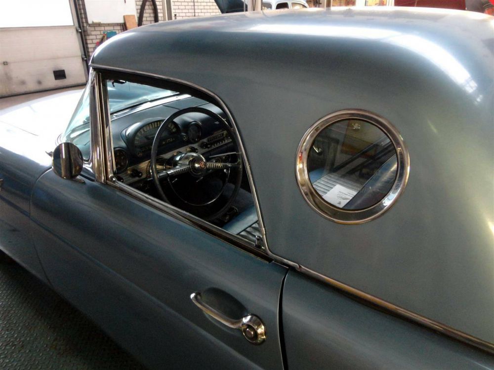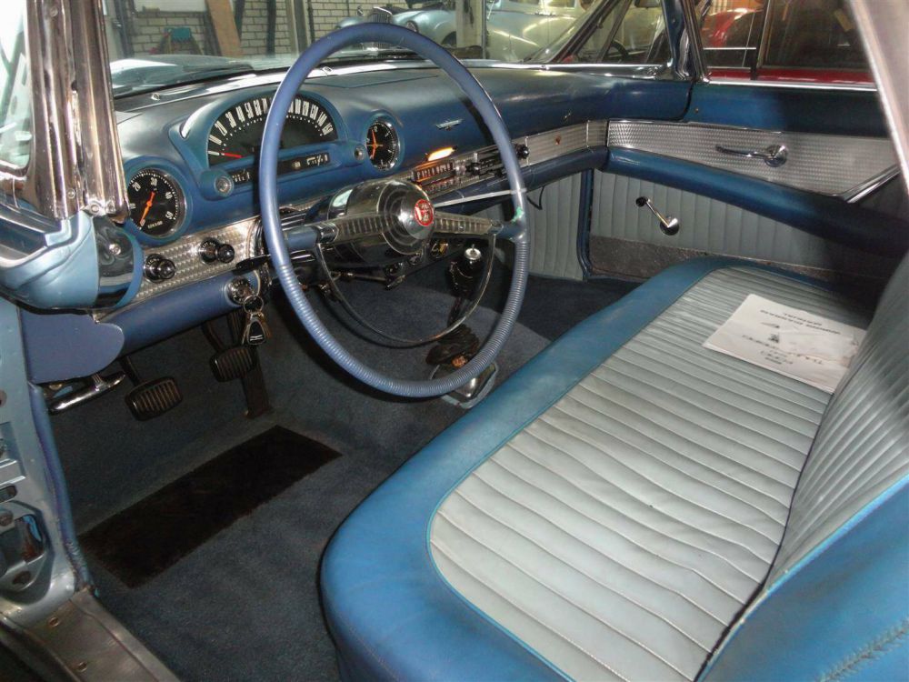 A Ford Thunderbird from the first series. A roadster/cabriolet version with a soft and hard top. A beautiful, complete car with manual gearbox.This Thunderbird has the original double exhausts that run through the rosettes of the bumper! The car drives, brakes and shifts perfectly! The paint and chrome still look very good. The interior of the car is also very neat!! It is clear that this car belonged to an car enthusiast. Unfortunately, the soft top has become discolored and worn over the years. But as far as we are concerned, that is the only downside of this car. In short, a neat Ford Thunderbird.This Thunderbird has been imported into Europe and all taxes have already been paid. Biggest choice in REAL Classic Cars in the Stolze Collection , with more than 450 in stock, from a project to perfect!
