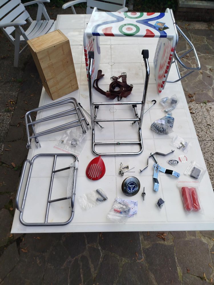 Molti pezzi di ricambio, accessori e allestimento per grandi viaggi compresi