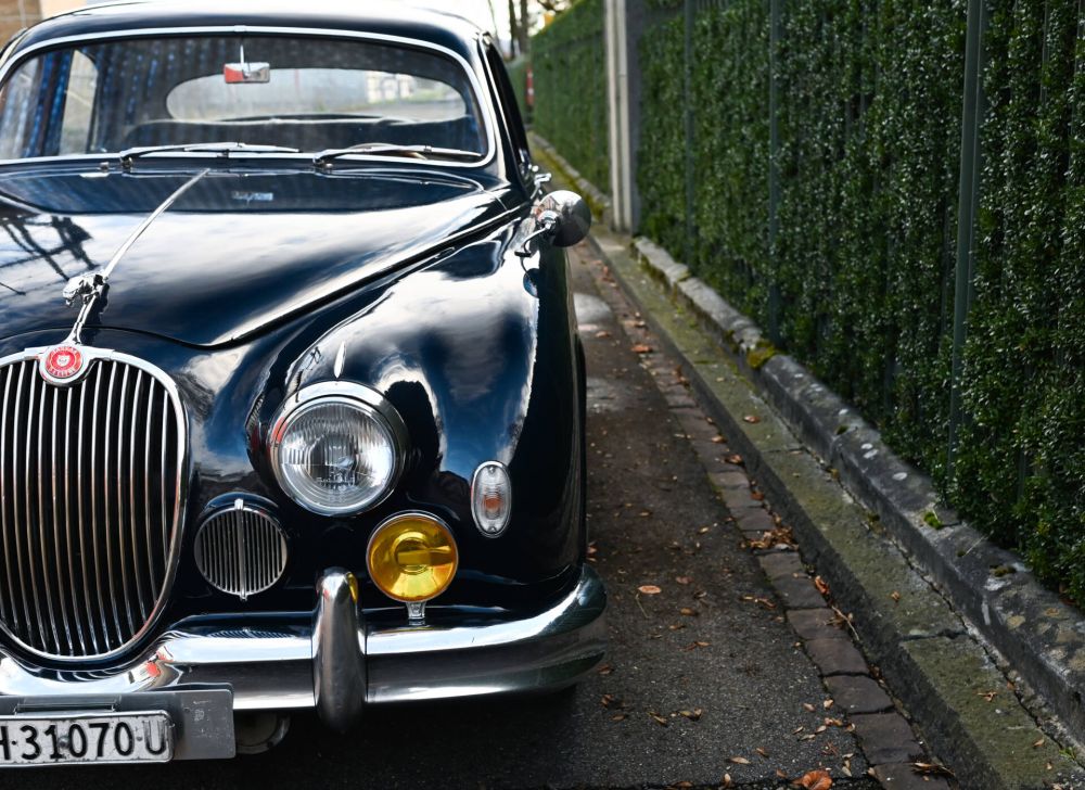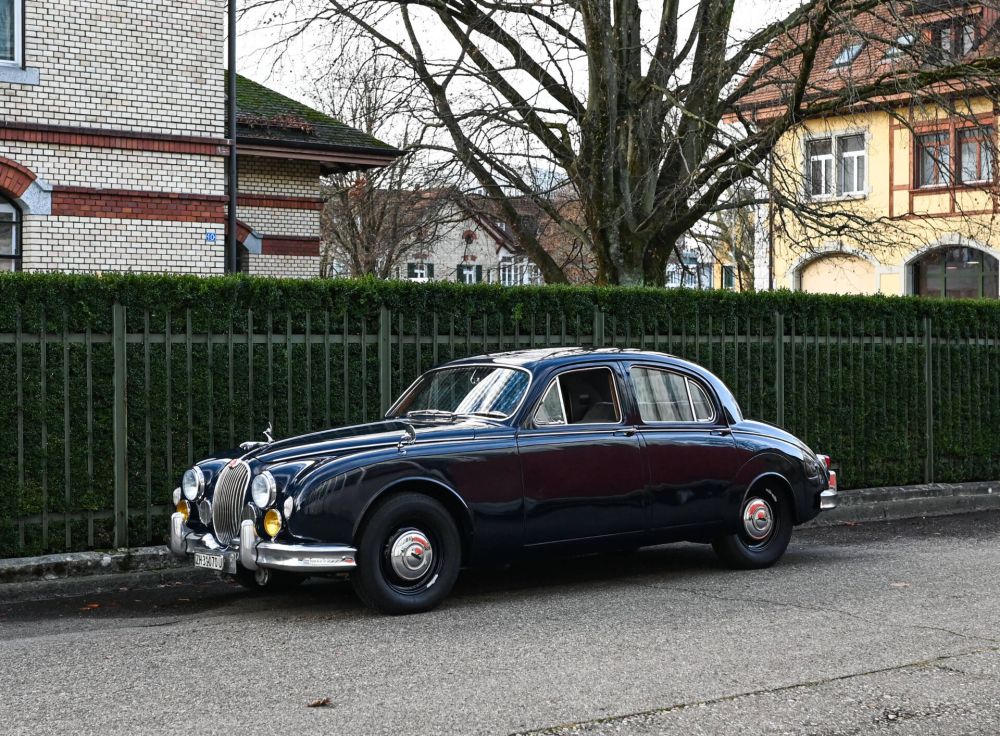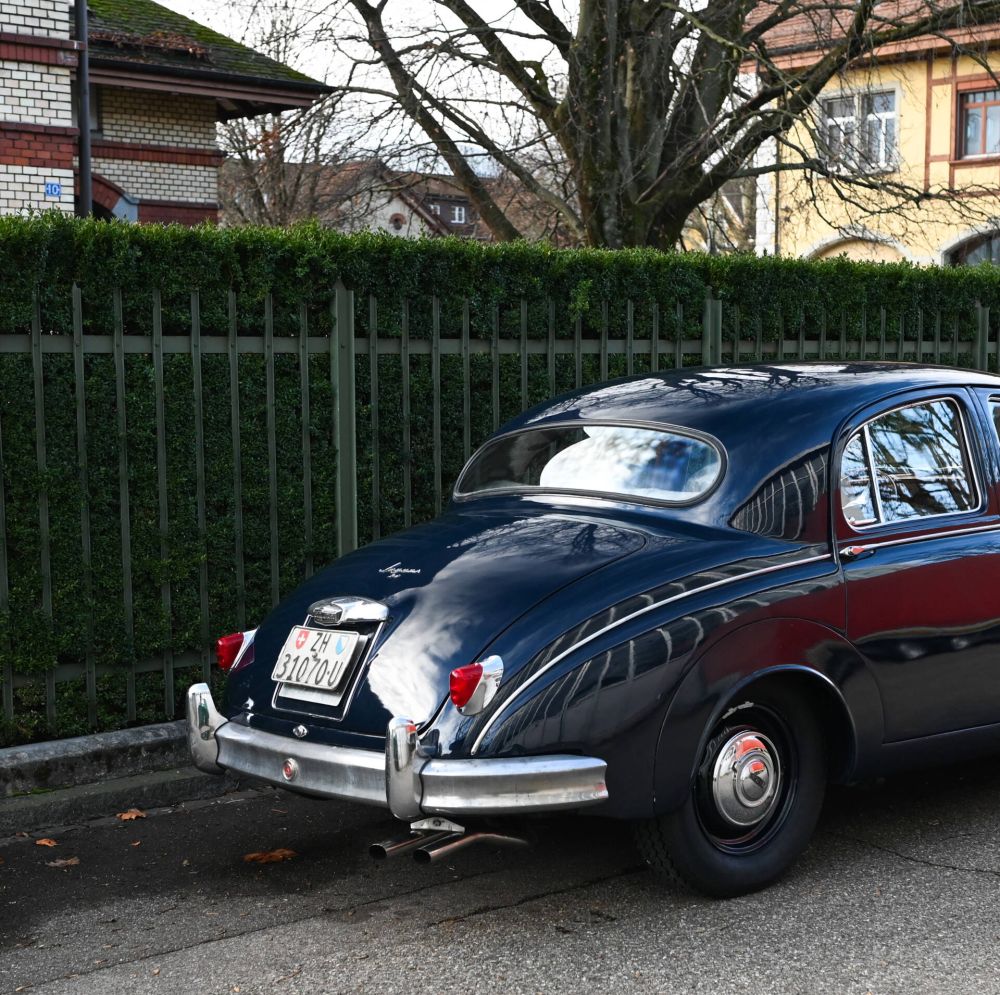 Bei seiner Markteinführung 1955 war der MK I das erste Modell der Marke mit selbsttragender Carrosserie anstelle einer Leiterrahmens mit Ponton Aufbau wie es bei den meisten Fahrzeugen damals üblich war. 1957 wurde der Wunsch nach einer stärkeren Motorisierung, vor allem von Seiten der amerikanischen Händler, erfüllt. Die USA war insbesondere in den 50er und 60er Jahren der wichtigste Absatzmarkt für Jaguar. So bekam die Limousine den 3.4 Liter Reihensechszylinder, welcher unverändert aus dem XK140 übernommen wurde. So war das Auto mit nun 210 PS der vermutlich schnellste 4-Türer seiner Zeit. Entsprechend sportlich wurde auch das Fahrzeug konzipiert. Es gab Dunlop Scheibenbremsen an allen 4 Rädern, Einzelradaufhängung mit Schraubenfedern und Teleskopstossdämpfern vorne und eine abgeänderte Version der Hinterachse des Le Mans Siegers D-Type. Letzteres Bauteil machte den Wagen bei hohen Geschwindigkeiten sehr stabil nicht zuletzt wegen der Spur, die hinten schmäler ist als vorn. Auf der Rennstrecke etablierte sich der Wagen nebenbei zum Favoriten seiner Klasse. Prominente Piloten wir Mike Hawthorn, Stirling Moss, Roy Salvadori oder Jack Sears sassen bei Tourenwagen und Saloon Rennen am Steuer eines MK I. Dieser MK I 3.4 wurde im Sommer 1959 durch Jaguar Cars in New York ausgeliefert und gehört somit zu einem der letzten Exemplare dieses Modells. Damals wie heute trägt das Auto aussen „Indigo Blue“ und auch die Motornummer stimmt mit jener der Auslieferung überein. 2002 wurde das Auto nach Deutschland und 2024 schliesslich in die Schweiz importiert. Der Wagen ist nun verzollt und besitzt neben dem originalen deutschen Fahrzeugbrief auch das Schweizer 13.20a. Das Interieur wurde vor Jahren inklusive Holzarmaturen erneuert. Nur die Rückbank befindet sich noch in originalem jedoch defektem Zustand. Der Motor wurde 2019 in Deutschland komplett revidiert und seither sind kaum Kilometer zurückgelegt worden. Rechnungen und Bilder der Revision sind neben zahlreichen weiteren Belegen vorhanden. Dazu gehört auch ein Jaguar Heritage Zertifikat. In unserer Werkstatt wurde bereits frisch ein grosser Service durchgeführt und neue Reifen montiert. Das Auto läuft sehr schön, der Motor durchzugsstark, Bremsen und Fahrwerk ebenfalls voll funktionstüchtig. Auch das Getriebe mit Overdrive funktioniert einwandfrei. Das Auto wird mit 13.20 ab Platz verkauft, ist aber problemlos fahrbar. Es bleiben nur noch wenige Mängel zu beheben wie den Tacho Umbau auf Kilometer, Instandstellung der Tankanzeige und des Drehzahlmessers gegebenenfalls Erneuerung der Rückbank. Nach Absprache kann das Auto auch mit neuer MFK erworben werden. Ein sehr rares Auto, welches mit überschaubarem Aufwand zugelassen werden kann. *Eintausch möglich*