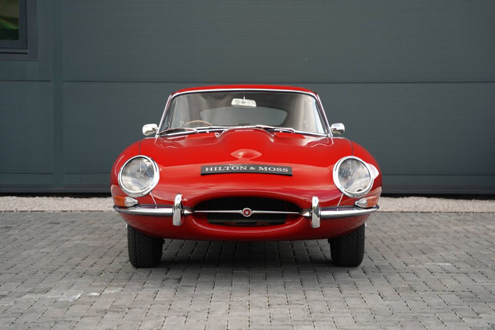 This 1962 Jaguar E-Type Series 1 3.8 Fixed-head Coupe is available for purchase at Hilton & Moss, finished in its stunning original shade of Carmen Red with a Black leather interior.