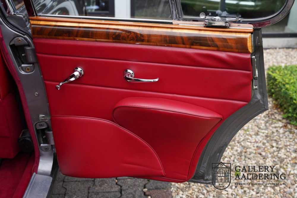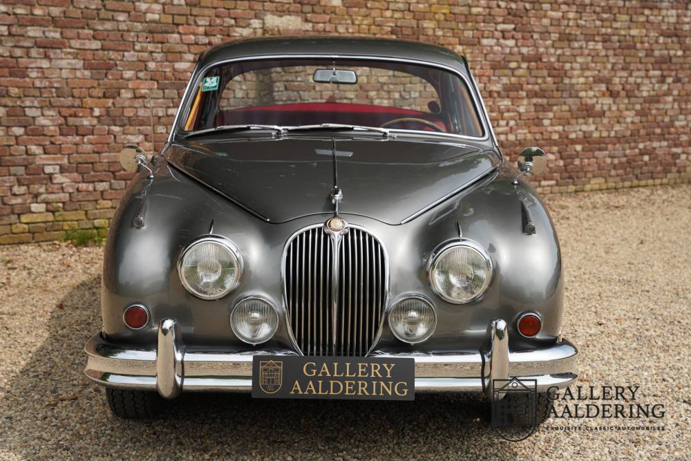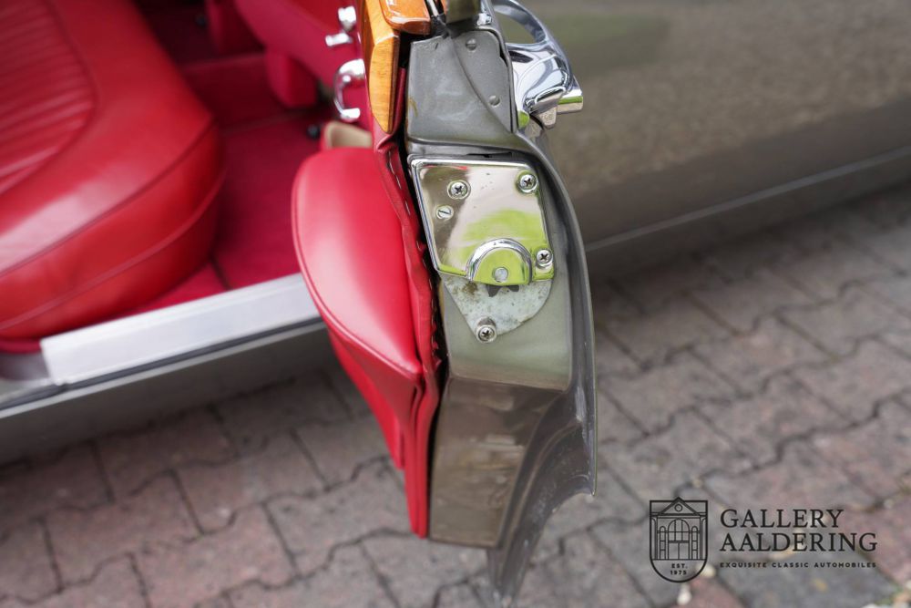 Our Mark II is the popular 3.8 six-cylinder version. Still fast especially in combination with a manual transmission with overdrive. The top was in excess of 200 km/hr and 0-60 mph in a respectable 8.5 sec. The mark II made its entrance in 1959 and our one is an early 1960 example. In the mid-80’s the car came over to Holland and was subjected to a 10 year restoration plan under the auspice of a Jaguar-specialist.