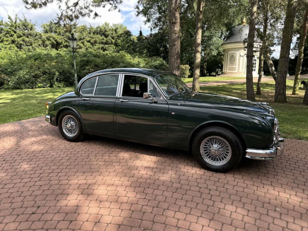 Eleganter Jaguar MK II von 1960 in klassischem, dunklem und vornehmem British Racing Green (BRG) mit einer wunderschön abgestimmten Innenausstattung.