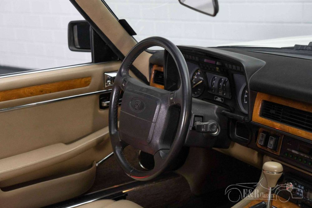 This is a limited 'Classic Collection' XJS that is equipped with the distinctive honeycomb wheels, twin headlights, classic badging and gold-plated logo on the hood. It has a white paintwork that fits perfectly with an English classic and combines very nicely with the light brown interior. The interior is in a very neat condition and is equipped with leather upholstery, electrically adjustable and heated seats and a beautiful dashboard with Elm Burl wood finish. The XJS has an electrically adjustable black soft top that you can fold in at the push of a button as soon as the sun shines.