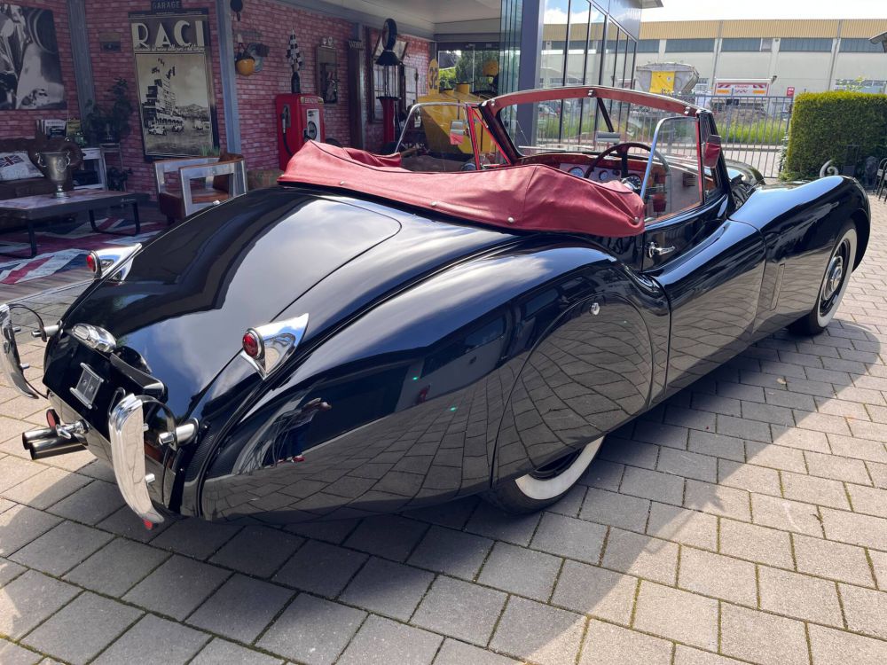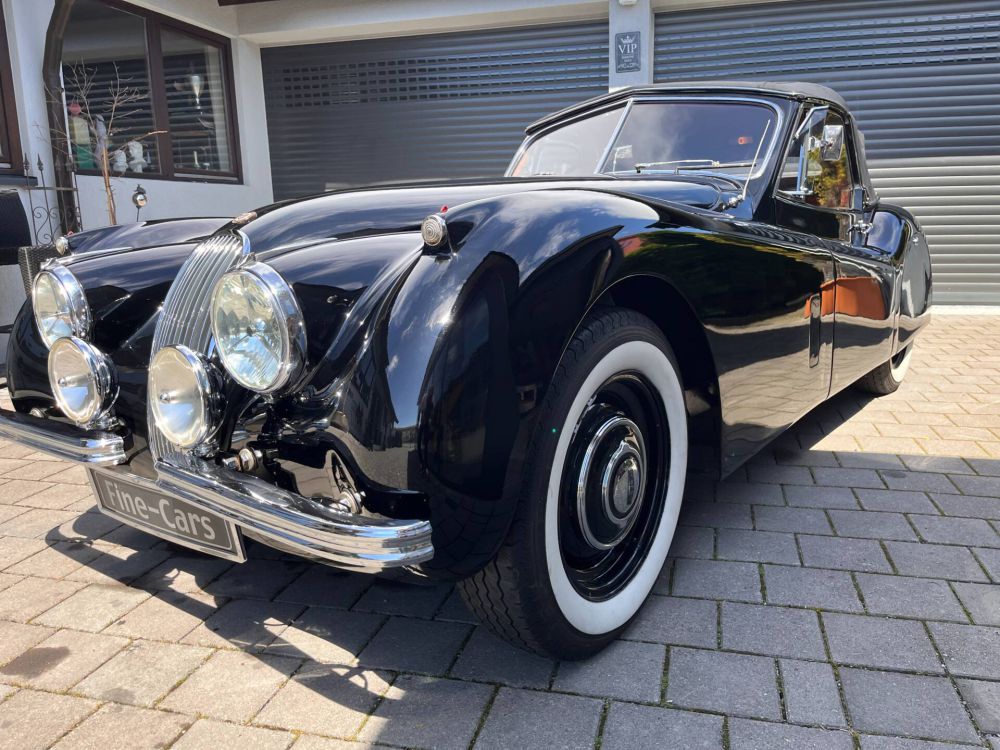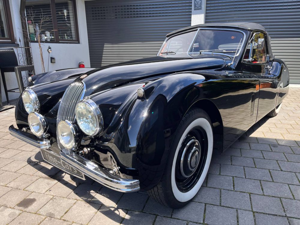 Sehr schöner und restaurierter Jaguar XK 120 in klassischer Farbkombination Glanzschwarz-Bordeaux, ...In den Jaguar XK 120 wurde der erste Jaguar-Motor mit zwei obenliegenden Nockenwellen eingebaut, womit dieses Fzg. eine Höchstgeschwindigkeit von 200Km/h erreicht. Der XK 120 besticht durch seine elegante, ästhetische Form und zählt sich somit zu den Favoriten, bei Veranstaltungen und Liebhabern. Eine umfangreiche Dokumentation ist vorhanden. Schweizer CH-Veteranen-und Deutsche Zulassung vorhanden, sowie der orig. erste Brith.Fzg.Brief. Ebenfalls ist ein original-Productions Record Trace Certificate von Jaguar vorhanden. Der Motor wurde komplett revidiert im Zuge der Voll-Restauration. Das Fahrzeug befindet sich in einem außergewöhnlichst schönem Zustand und ist sofort einsatzbereit.