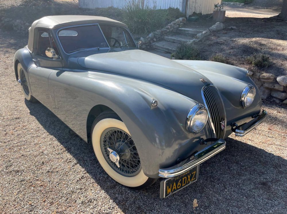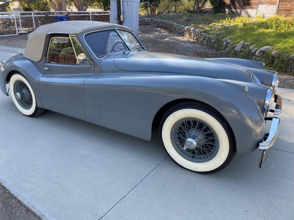 This car was purchased new in Sherman Oaks, California and is a genuine SE model. The original lady owner drove the car until the early 60s. Following the purchase of an E type, the XK120 was placed into storage where it remained until the owner passed away. Leaving the car to her son, who decided to part with it without having used it. The car was purchased and recommissioned by its current third owner. This car is 100% original and has covered an authentic 34,000 miles. It still wears its original Birch Gray exterior paint and red leather interior. The current owner decided to preserve the original wheels and tires by fitting a new set of 5 color coded wire wheels and original specification tires. In addition the car is also supplied with new over carpets and seat bases, so the new owner can drive and enjoy the car while preserving the original seat bases and carpets. The car is matching numbers, starts easily and runs very well. The Moss gearbox shifts very smoothly and definitely supports the 34,000 miles shown on the odometer. An original tool kit, pump and jack is also present.There are many original factory inspector sign-off codes throughout the car that can clearly be seen. This car is an incredibly rare find and a real time capsule. There are several period artifacts such as Los Angeles driving maps etc, that will accompany the car. The car took 1st place in the Preservation class of the 2018 San Marino Motor Classic. It was also catalogued and photographed by the Jaguar Club of North America as reference material in the judging of other Jaguar XK120s A Jaguar Heritage certificate also comes with the car, along with the original pink slip.This car has never been out of California & as a result has zero corrosion. The car is located currently in Southern California where it may be viewed by prior appointment.