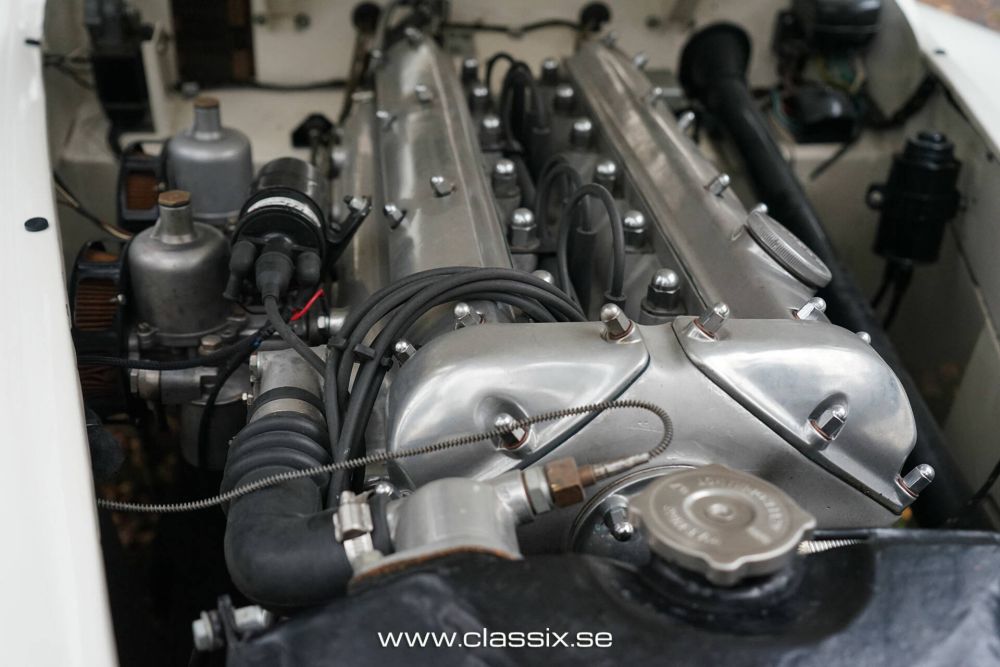 The car was prepared to participate in the Mille Miglia in 1988, but unfortunately, there was no space available. The Jaguar XK120M then enjoyed a quiet life in Mr. Wramell's collection until 1996, when the car was sold to a new owner who used it only on beautiful summer days. On one of these drives, a noise developed from the engine. When the camshaft chain was checked, it was found that the chain tensioner for the camshaft drive had broken and that this had been the reason for the noise problem mentioned above. Subsequently, the engine, including the clutch assembly, was completely disassembled, the engine block cleaned, and the engine totally rebuilt with every component inspected and exchanged when deemed necessary. Finally, the engine was run in a test bench at Bo Ridström Racing AB and its performance was confirmed. The engine and gearbox now run perfectly.