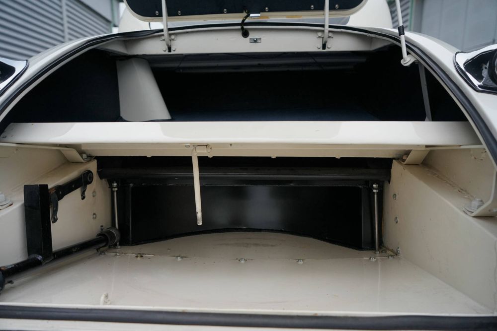 Exterior: The Jaguar XK120 M we have for sale today is a striking car in white. It looks a bit sportier than the standard XK, with its lower ride height and wire wheels. The paintwork on this car is absolutely stunning, as are all the chrome details. All panel gaps are perfect, and the doors open and close effortlessly, even with new rubber trim. The teardrop design and split front screen of the Jaguar XK120 Coupe reminds you of the style of exclusive French cars from the 1940s. The spoke wheels are in good condition and fitted with Michelin Pilote X tires, which are the best available tires for these cars.
