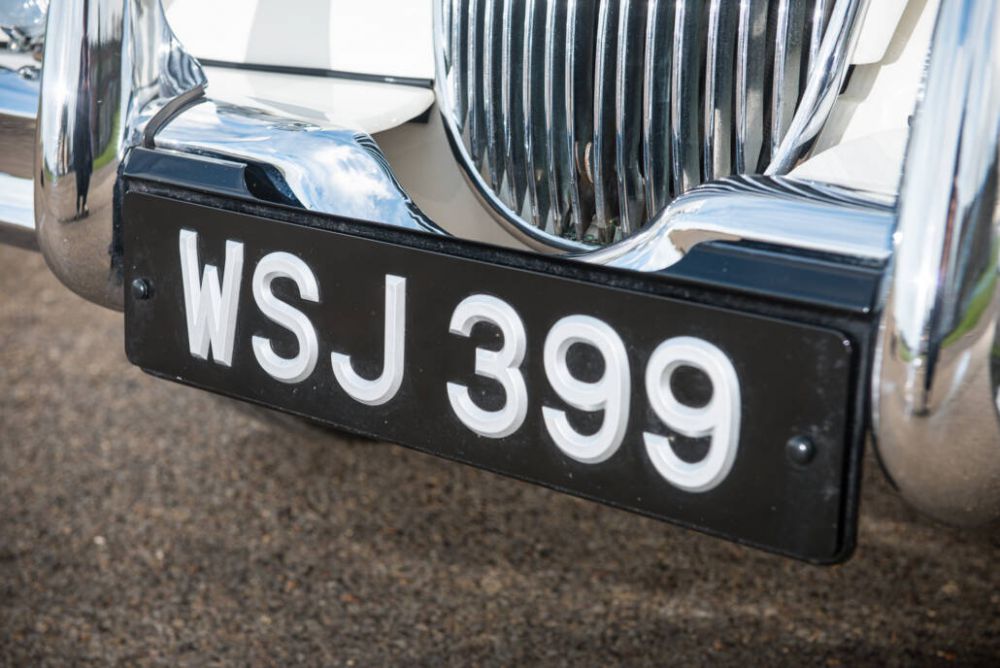The swansong of the XK range, the XK150 was the most comfortable of all the XK’s, and the most suited to Grand Touring. The 3.8S XK150 engine, at only 10 bhp behind the E-Type (according to the factory!),  was the most powerful production road engine Jaguar had produced, as well as being the most advanced. Chassis T 820078 DN was built in May 1960, and supplied through Henly’s, London. Finished in Cream over Red, the colours it is finished in today, it retains its original U.K. registration number WSJ 399. Little is known about the early history of the XK, but there is no question as to the authenticity. There is a letter from Chris  Keith-Lukas on file who, having inspected the Jaguar, confirms it is chassis T 820078 DN. Additionally, Philip Porter confirms it is an original 3.8S as listed in the Clausenger book. It has recently formed part of one of the most significant of U.K. collections. Under their custodianship, it has been looked after by David Brazell of Brazell engineering, who completed a thorough service and recommissioning in 2022 at a cost of almost £10,000. With it being one of only 24 of the original Right Hand Drive 3.8S Roadsters built, it is one of the rarest XK’s, and certainly one of the most desirable. Fully matching numbers, this is an XK for the serious collector.