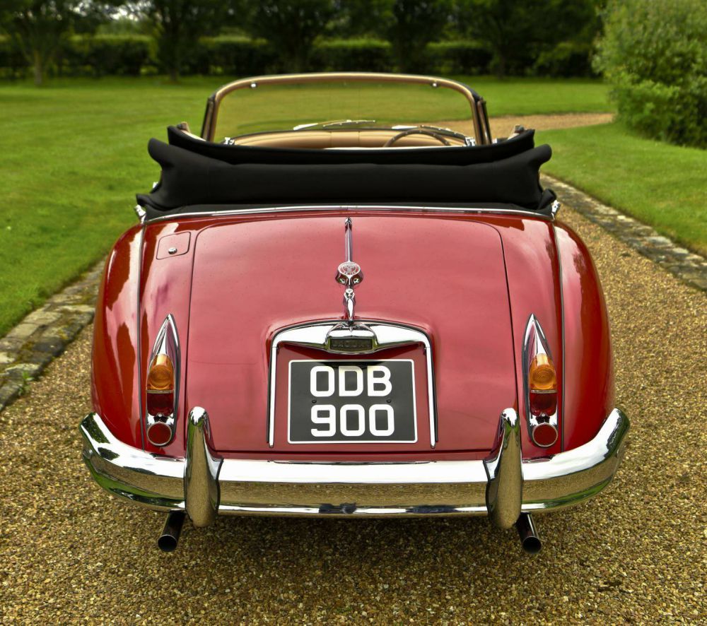 1959 Jaguar XK150SE overdrive 3.8 Litre Drop head Coupe RHD Chassis number: S824643DN Registration Number: ODB900 Nut & bolt restored to as new by Marque Specialists Leaping Cats. Since then this car has covered a scant 127 shakedown miles. The exterior paint is flawless carmine red. To the interior is beige leather & beige carpets along with a correct grey leather dash board insert. A black mohair hood completes the car which is easily lowered after releasing 2 over centre clips to the front of the lined hood. Power steering has been added for ease of use by the octogenarian owner. The car sits on brand new chrome wire wheels with knock off spinners & is disc brake equipped to the front. Underneath the car is as good as it is on top looking simply brand new. The motor starts instantly & settles down to an even idle with a slight induction roar when the thottle is depressed & all the right noises coming from the fully rebuilt twin cam engine. The rebult original Moss gear box is a pleasure to use with ecellent synchromesh on all gears. This car was selected & built to be a last comfortable classic car for the current owner who is now about to turn 80 & is divesting himself of assorted posessions. To achieve this he sourced an orignal solid 3.8 Litre FHC with overdrive & sent it off to be remanufactured to like new in the stunning condition we find it in today & without regard to cost. Old age & lack of mobility mean the car is coming to market with just 127 shakedown miles covered. The old Motolita steering wheel in the car was left in situ & a brand new Moto Lita item comes with the car ready for the new owner to install. The DN in the chassis number tells us that it was an overdrive car from new & the S prefix designates it as being a special equipmnet model. Not much more need be said as perfection needs but few words. I have rarely seen a better one & simply cash amounts of money have been spent upon the car to bring it up to this standard. Viewings are by appointment in Alderly Edge south of Manchester.