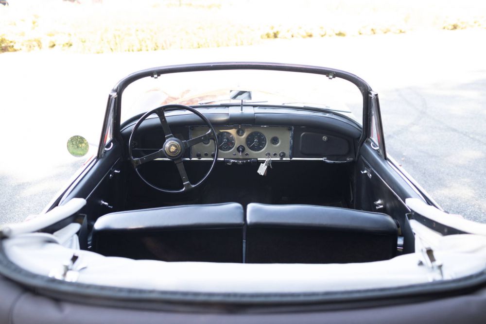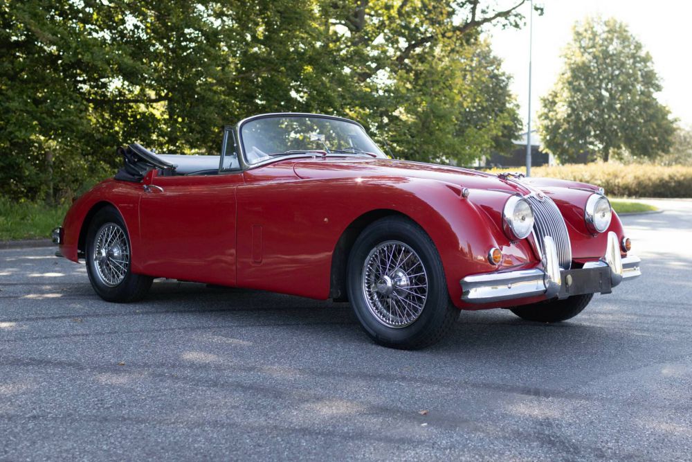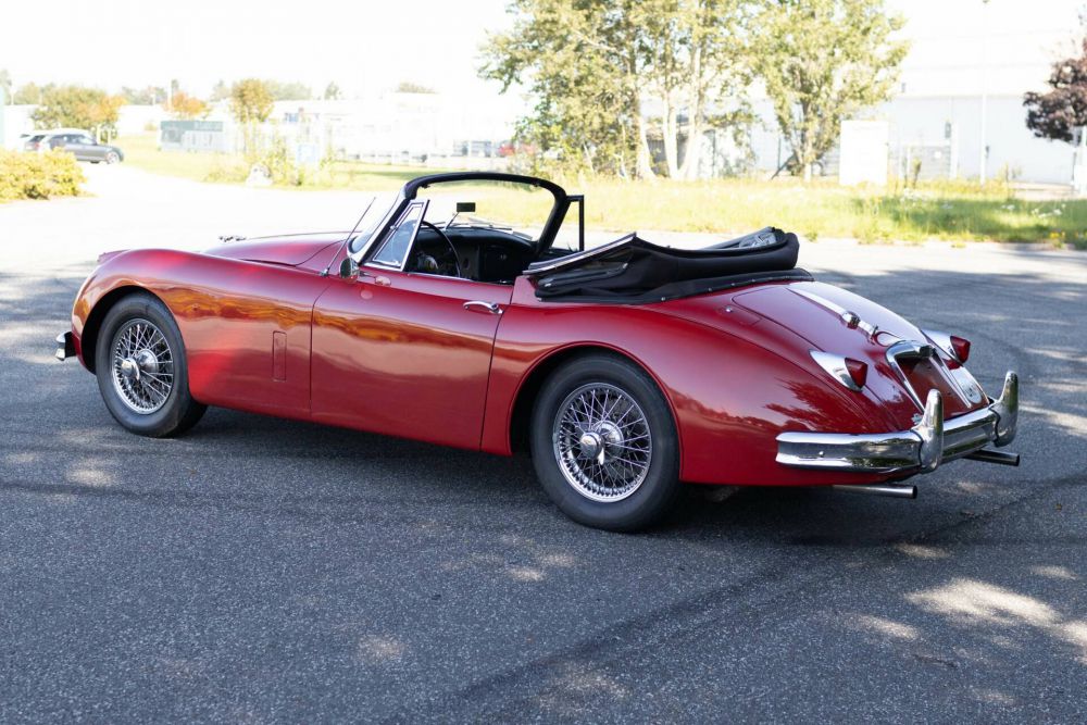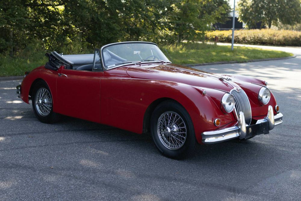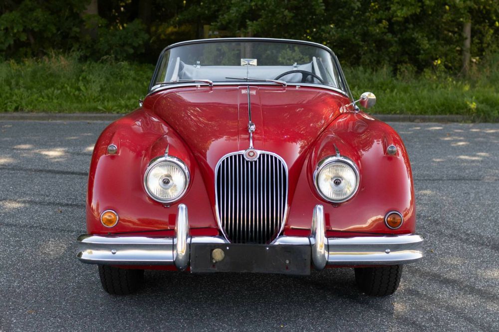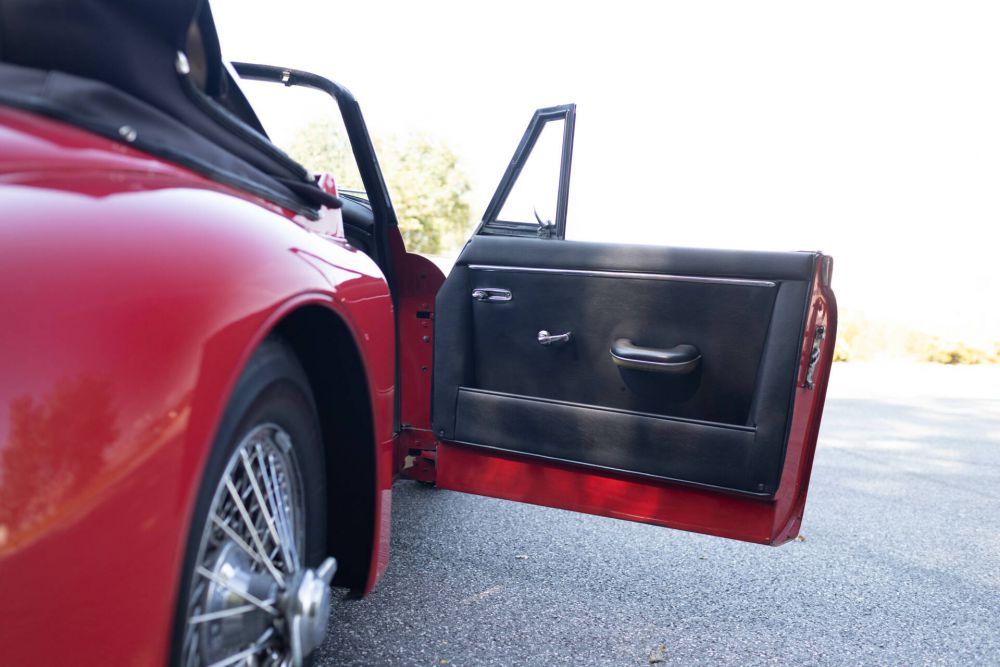 Original matching-numbers Jaguar XK150 SE - Drophead Coupe in Red over a black leather interior and only 34299 miles on the odometer. The car retains its original 3.4-liter double-overhead-camshaft six-cylinder engine and three-speed automatic Borg-Warner transmission. This car is the Special Equipment (SE) model with a more powerful engine compared to the standard model.