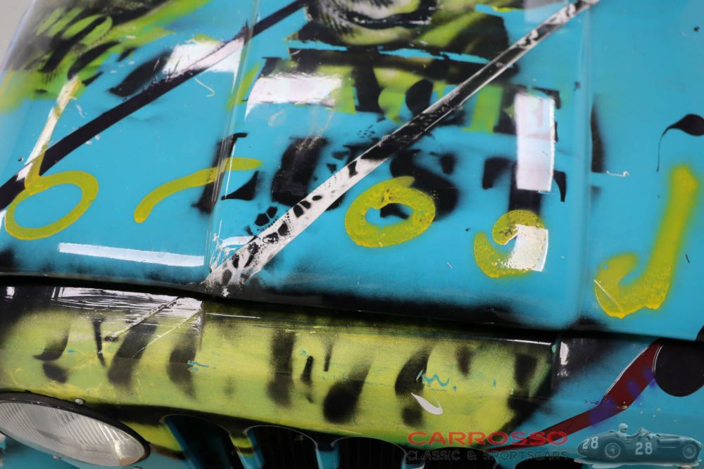 Unique! This robust Jeep was painted by the famous singer and painter Herman Brood. For a good cause at the time, he painted 12 Jeeps: each in a distinctive and therefore unique way. He said about this himself: Boy, am I surprised that people don't have their cars painted more often in order to get their vehicles out of their anonymity as well as to be able to brag in the street cq. to avoid gestaltless passing. After all, a painting is only seen by the one and a half bipeds that come to your place. Moreover, in my capacity of attention-seeking exhibitionist, I am far from averse to seeing my creations in the cityscape. You see, I will keep you informed. The certificate of authenticity, signed by Herman Brood, is present with the car. This specimen's beautiful bright blue colour makes it extra striking. Besides being a wonderful collector's and art object, the Jeep is of course also a robust off-roader: equipped with 4x4, a 6-cylinder engine, off-road tyres and ready to put a smile on your face on any terrain. The transmission is automatic. The rear seats accommodate two extra people and the roll bar offers protection. Also included with the car are a canvas convertible roof, radio/CD player and spare wheel. In short: a unique art object with a high FUN factor as well!