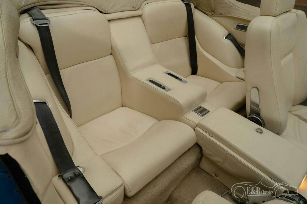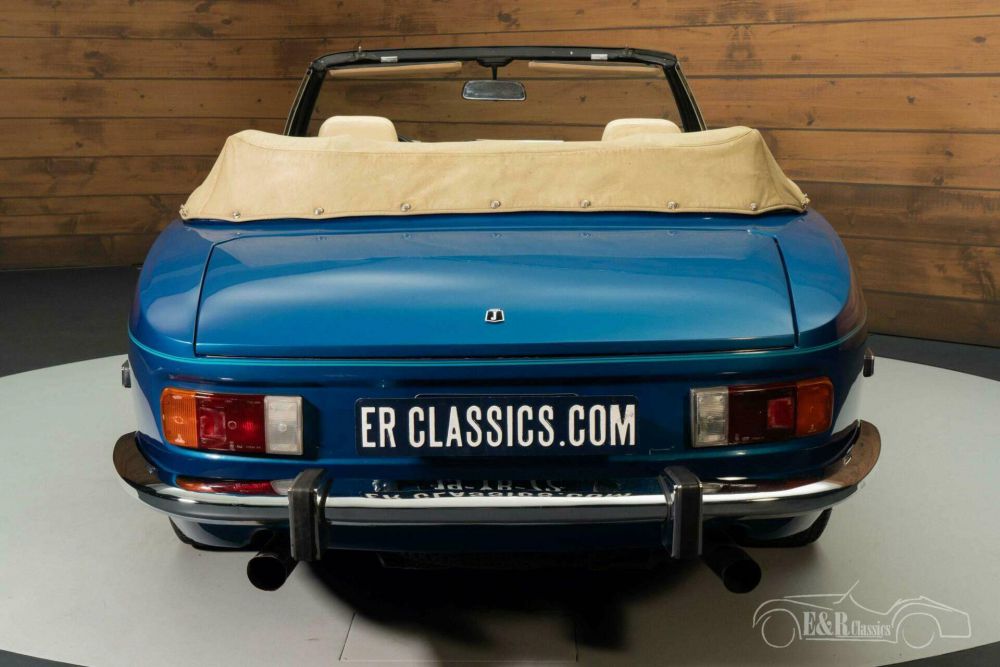 The Jensen Interceptor MK3 Cabriolet that we offer for sale here is truly a sight to behold. It has a dark blue metallic paint. The interior is made in beige, which combines very nicely with the dark blue paint. It is also equipped with a beige-coloured soft top that you can fold in an instant as soon as the sun shines.