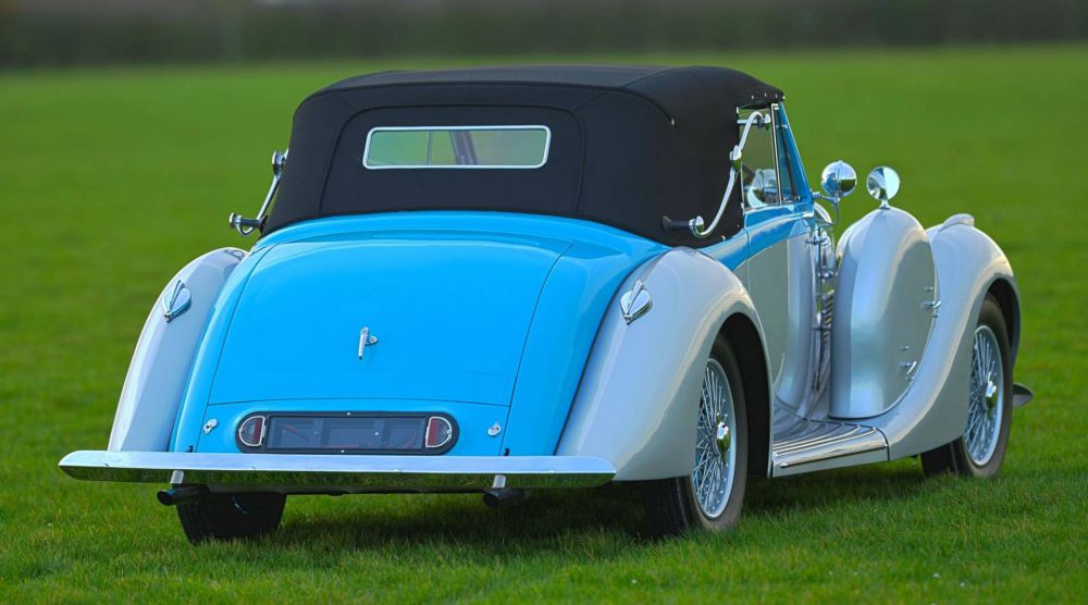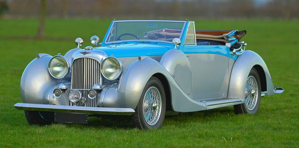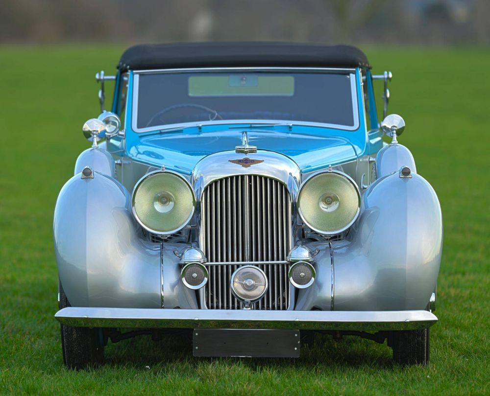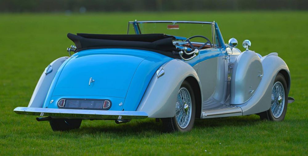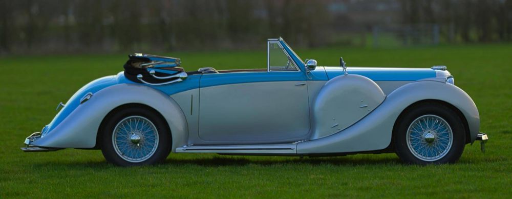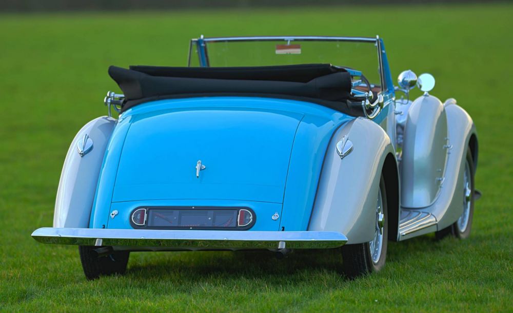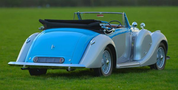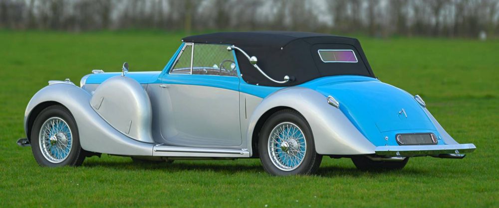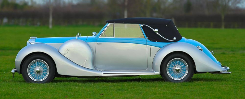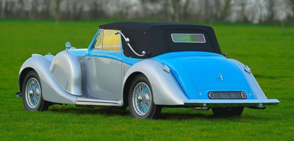 1939 Lagonda V-12 Drophead Coupé Chassis number: 14062 Engine number: 14062 Registration number: TBA Body Number: 7542 According to the Lagonda Club of Great Britain, the V-12 Drophead Coupé offered here was delivered new to James Scott and Son, of Dundee. In recent years it was fully restored in Sweden by world renowned Rolls Royce & Bentley specialists Rohdins Automobil in Sweden. Over 6000 hours went in to the car & it was completed in 2008. The car needless to say is in spectacular condition having covered few miles since restoration & has resided in a heated garage. It is finished in pale blue over silver, a striking combination that accentuates the flamboyant lines of the car. To the interior is black hide throughout with a black mohair hood to match the car. The burr walnut has also been removed & expertly refinished. This is a car that represents the apogee of pre war manufacturing. A wonderful convertible body allied to a seamlessly smooth V12 engine designed by no lesser personage then Walter Owen Bentley himself. A mere 189 examples of the V12 were produced making it a rare bird indeed. We will be UK registering the car in December as soon as it arrives with us. At the same time we will conduct a full & up to date photo shoot of the car to our usual standards.