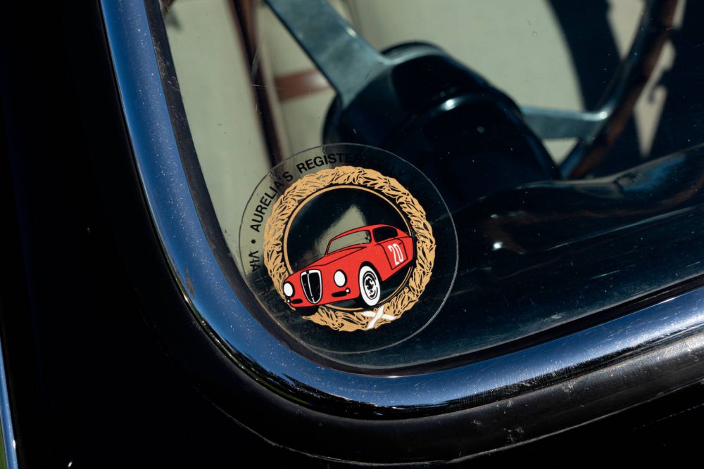 Oltre alla sua bellezza intrinseca, questa Lancia Aurelia B20 conserva la sua targa originale di Torino e il libretto a pagine dell'epoca. Si contano solo due proprietari dell'auto, tra cui il famoso restauratore di Lancia, Maximilian Cappa, entrambi hanno avuto molta cura dell'auto, conservandola solo in garage.