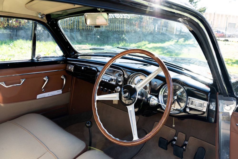 Lo stato di conservazione dell’auto è superbo. La carrozzeria nera risplende al sole, così come l'elegante interno in panno e nocciola, entrambi splendidamente conservati nel corso degli anni. I tappetini originali, mille righe, sono un tocco di autenticità, grazie ai tappetini in moquette, che hanno preservato la loro bellezza originale.