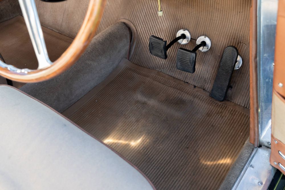 All'interno, la radio Blaupunkt svolge il suo compito, mentre la leva del cambio è posizionata sulla sinistra, a significare l’apprezzato cambio Nardi dell’epoca. Negli esterni, lo stato di conservazione si riflette anche nei fari con incise tutte le scritte Carello, accompagnati dai numeri di serie dei componenti, testimonianza di una storia ben conservata.