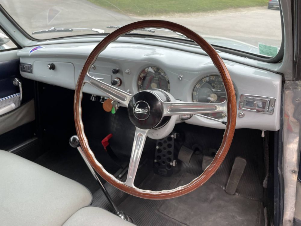 notre aurelia b20 est dans une configuration des plus raffinée, bleu ciel avec l’intérieur blanc. sa carrosserie est en très bel état tout comme son intérieur.