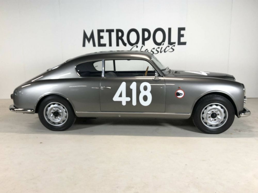 This beautifully restored Lancia Aurelia Coupe is one of the third series with the 2.5 L engine and 118 hp. This car competed in the 1954 Mille Miglia and 4 other international rallies. Because this is one of the few Aurelias that actually participated in the Mille Miglia, you are guaranteed a place in this rally of rallies. This Aurelia has also been completely restored to concours condition. It's a dazzling super coupe for the Gentilman rally driver. It is in dark gray metallic with a fabric light gray interior.