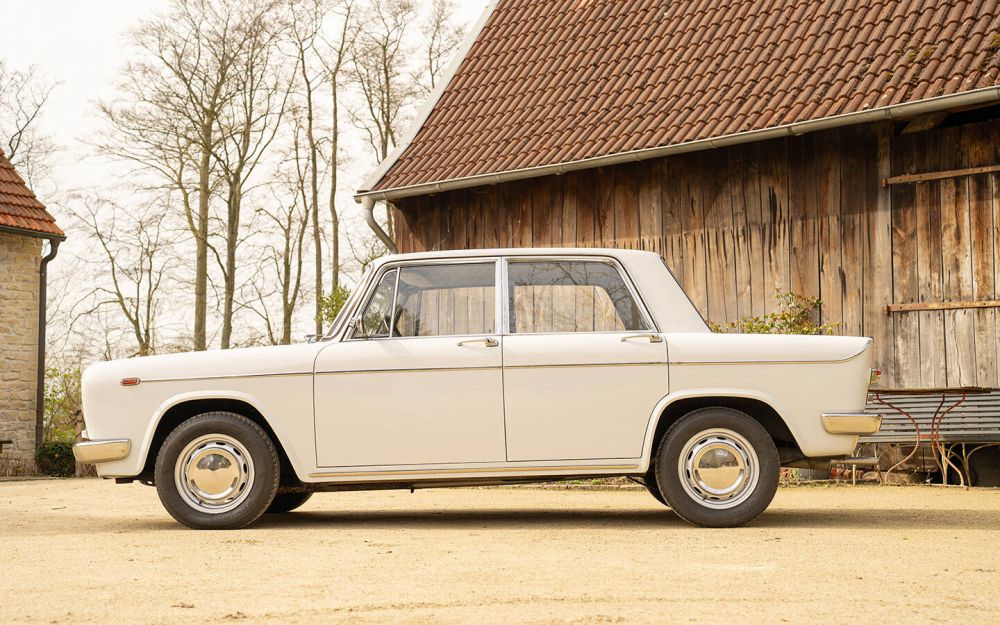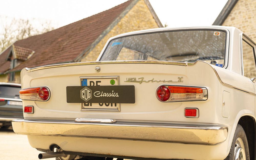 Die Limousinen-Variante des Lancia Fulvia wurde deutlich häufiger als die Coupé-Version produziert, trotzdem sieht man heute fast nur noch das Coupé. Als Fulvia 2C kombinierte die “Berlina” Qualität, agile Sportlichkeit und Alltagstauglichkeit. Ob man sie als schön empfand, darüber waren sich die Betrachter schon damals uneinig. Trotzdem bleibt die Fulvia ein Hingucker und lässt den Betrachter, sich an die stilvollen 60er Jahre erinnern. 4 Türen und eine Sitzbank in einem nur knapp 4 Meter kurzen Fahrzeug und unter 1,70 m Breite ist mit Sicherheit kein Raumwunder. Doch sind es nicht immer wieder die kleinen und agileren Fahrzeuge, die auch Spass am Fahren erzeugen? Diese Fulvia wurde am 05. August 1966 das erste Mal in Italien zugelassen. Im originalen Zulassungsdokument, welches den Unterlagen beiliegt, sind sämtliche Stempel bis 1982 eingetragen. Der aktuelle Besitzer hat das Fahrzeug Anfang 2018 bei Classic Park in den Niederlanden mit einem Kilometerstand von 87.801 km erworben und ist seitdem jedes Jahr nur ca. 1000 km gefahren. Die Fulvia befindet sich in einem unrestaurierten Originalzustand, weitergehend im Erstlack und besitzt sogar noch die originale Werksfolie an den Türtafeln. Für weitere Fotos und Informationen zu diesem und anderen Fahrzeugen, besuchen Sie gerne unsere Website: www.cog-classics.com.  Das Fahrzeug wird im Kundenauftrag verkauft. Alle Angaben ohne Gewähr. Irrtümer und Änderungen vorbehalten. Die Fahrzeugbeschreibung dient lediglich der allgemeinen Identifizierung des Fahrzeuges und stellt keine Gewährleistung im kaufrechtlichen Sinne dar. Die Angaben erheben nicht den Anspruch auf Vollständigkeit und sind ohne Gewähr.