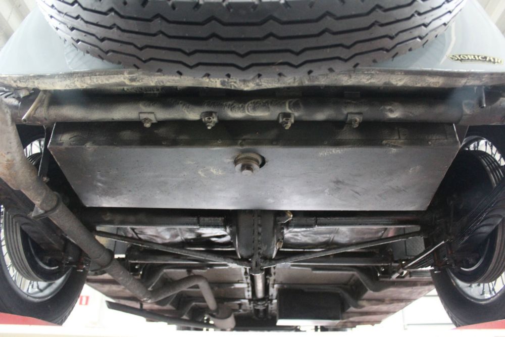 The body is elegantly finished in a soft gray with a striking red leather interior. The doors close with the typical precision you’d expect from a Lancia, and the gorgeous Jaeger gauges are correct and look phenomenal. The original steering wheel feels wonderful in your hands, and the steering is impressively precise. We can’t get enough of the upholstery, which has developed the kind of patina that nearly defies description. One look at the upholstery shows just how beautifully it has aged. The chassis is in good condition—take a look at the underside photos for an impression.