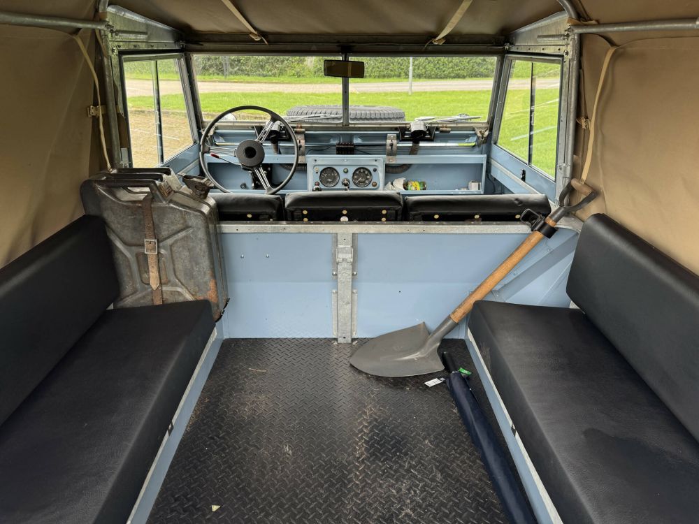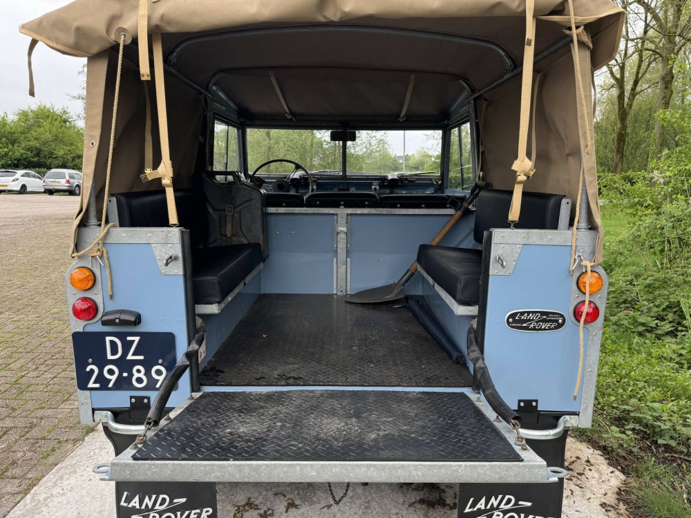 This Land Rover presented here is a completely restored one that has been brought back to life down to the smallest detail. It comes from the Land Rover dealer Terlouw in Nijmegen. It is sprayed in light blue and has black leather seats and benches. Furthermore, there is a canvas hood on it that is also completely new. Under the hood we see the 4 cylinder petrol engine that runs perfectly. It is a real Land Rover for the man who is looking for something special.