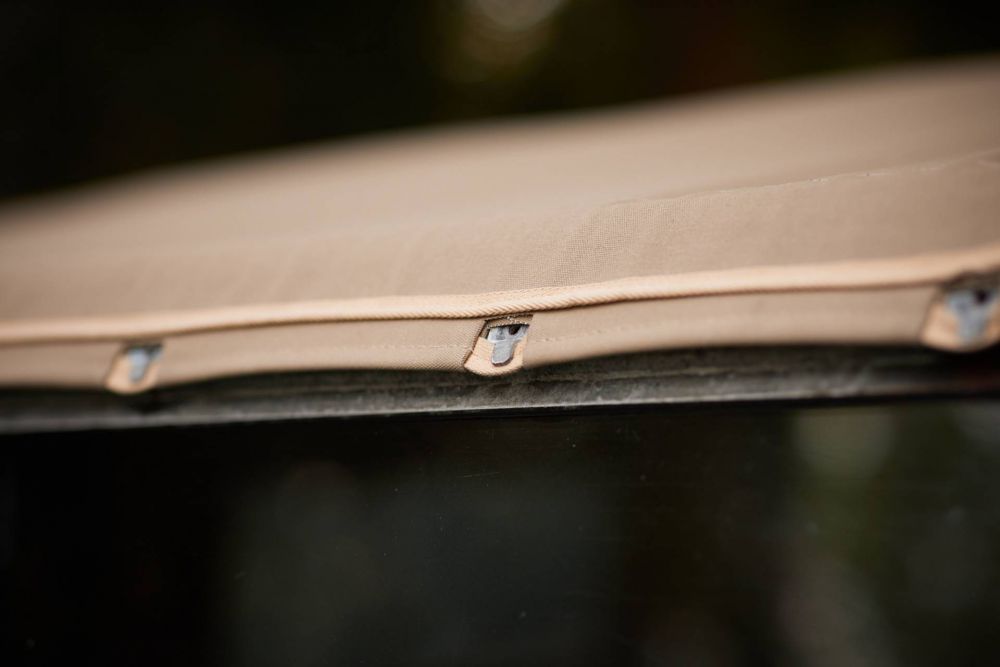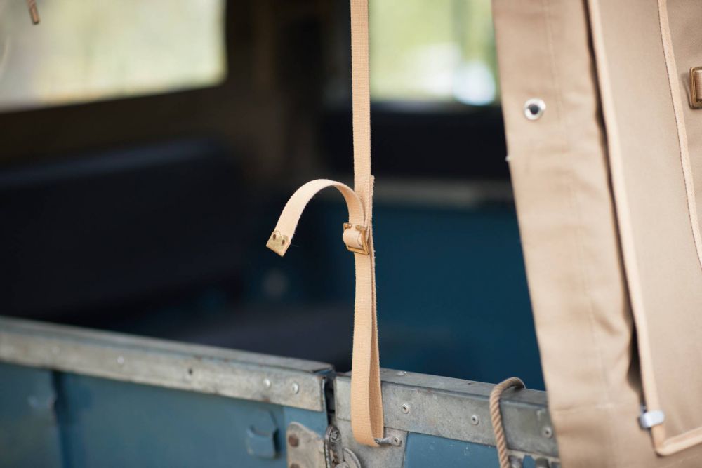 We pulled the Land Rover Series III 88 Metal Top out of its retreat and took it to the Heritage Cars workshop. The dust-covered ‘barn find’ was complete and luckily the storage facility had kept the car dry and solid. It was the perfect base for a preservation project and so we did. The engine ran, but the clutch failed. A major overhaul followed, but conservation was key here. The undercarriage, drive train, chassis and engine compartment were dry ice blasted. This helped us to inspect all areas thoroughly. We checked all components for rust, damage and repairs. Overall the car turned out to be in an exceptionally good condition. The original chassis remained while we fixed some of the earlier repairs and some rusted areas. Not shown on the photos is a brand new canvas hood.