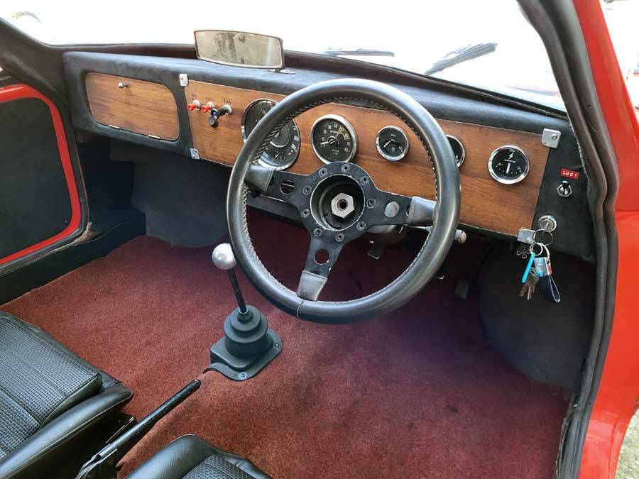 Coche poco común producido con algunos ejemplares por Marcos en Inglaterra, carrocería de fibra de vidrio, asientos deportivos, motor Mini Cooper con carburador de 1275 cc y 63 HP, excelente mecánica, registro ASI en CRS, documentos italianos listos para la exportación.
