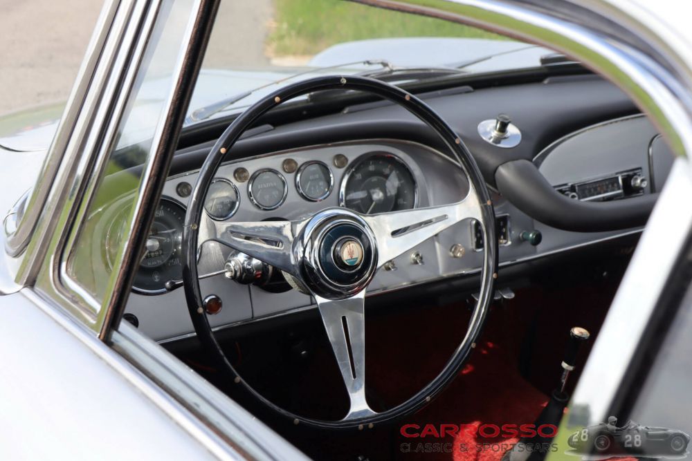 The chassis number is AM1012034 and matches the engine number. The body number of the Carrozzeria Touring is No. 12257. In the trunk you will find an original Borrani spare wheel and a tool-kit. In the documentation folder you will find several manuals and a parts catalog. You will also find several invoices and descriptions of the Lucas injection system. With its manual transmission and a powerful 6-cylinder engine with a displacement of 3485 cc and some 260 hp, this Maserati 3500 GTI Touring offers an unforgettable driving experience.