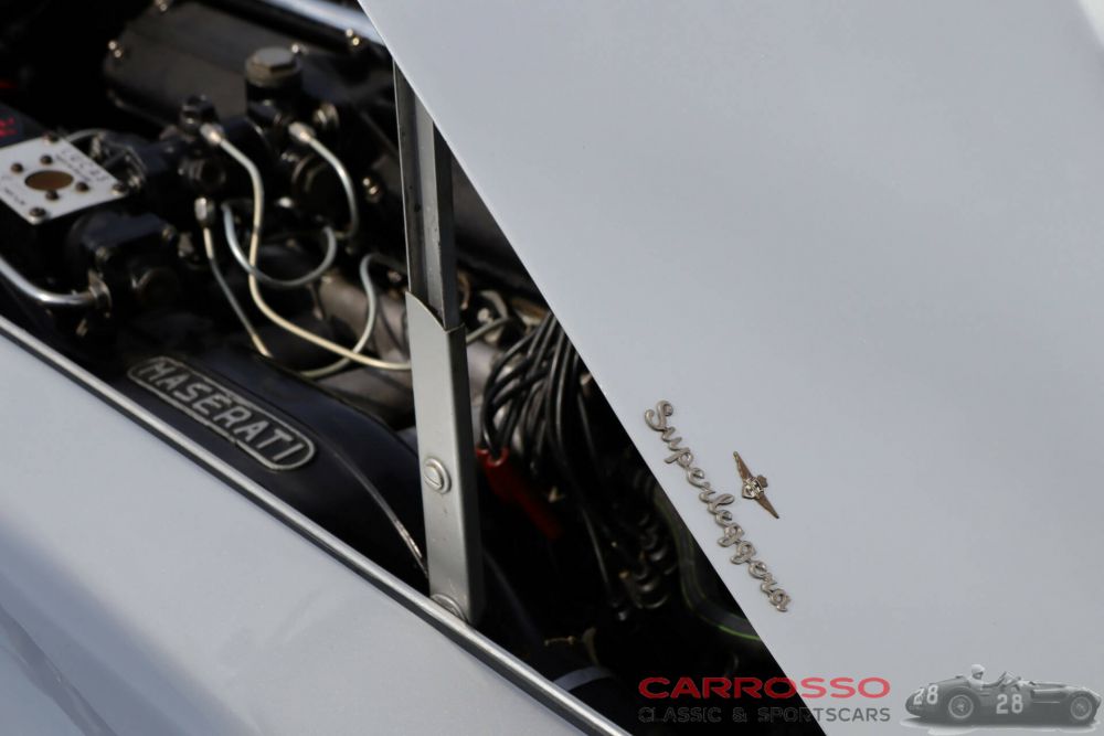 The Maserati is not only visually impressive, but also technically in good condition. The fuel pump has been overhauled and the fuel tank has been epoxy-coated. All fuel lines and pipes have been renewed and meticulously maintained. The water pump and Girling brakes were recently overhauled, while all hoses were replaced and a new clutch and pressure plate were installed. The Lucas injection system functions as it should and was a huge technical innovation at the time. The clutch thrust bearing is audible, but works fine. To fix this noise, the thrust bearing must be replaced.
