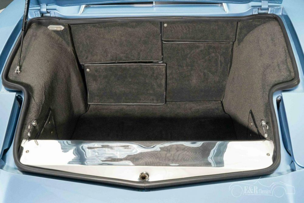 De Maserati Bora die we hier te koop aanbieden is tijdens zijn restauratie opnieuw gespoten in de fabriekskleur Celeste. Een prachtige lichtblauwe metallic kleur die helemaal past bij de exclusieve look van deze Italiaanse sportwagen. Hij staat op een set originele Campagnolo velgen met RVS hart die prachtig combineren met de raamstijlen en het RVS dak van de klassieker. Het interieur verkeert in een nette, originele staat en is uitgerust met zwarte lederen bekleding.