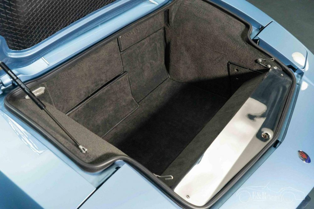 The Maserati Bora that we offer for sale here was repainted in the factory colour Celeste during its restoration. A beautiful light blue metallic colour that completely matches the exclusive look of this Italian sports car. It stands on a set of original Campagnolo rims with stainless steel heart that combine beautifully with the window frames and the stainless steel roof of the classic. The interior is in a neat, original condition and is equipped with black leather upholstery.
