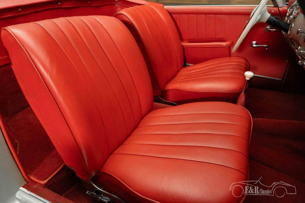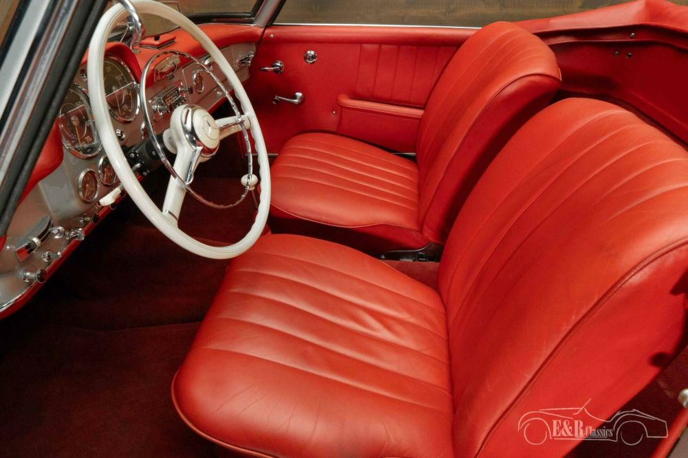 The 1958 Mercedes-Benz 190 SL is an icon of style and refinement. This model, produced between 1955 and 1963, combines the sporty appearance of the legendary 300 SL with the reliability and comfort of a grand tourer. This specific classic has been extensively restored and various invoices are available that underline the quality and care of the restoration. Under the hood lies the 1.9-liter four-cylinder engine that is equipped with the original Solex carburetors, coupled to a manual four-speed gearbox. This engine allows for a top speed of 170 km/h, making the 190 SL one of the most desirable roadsters on the market at the time.