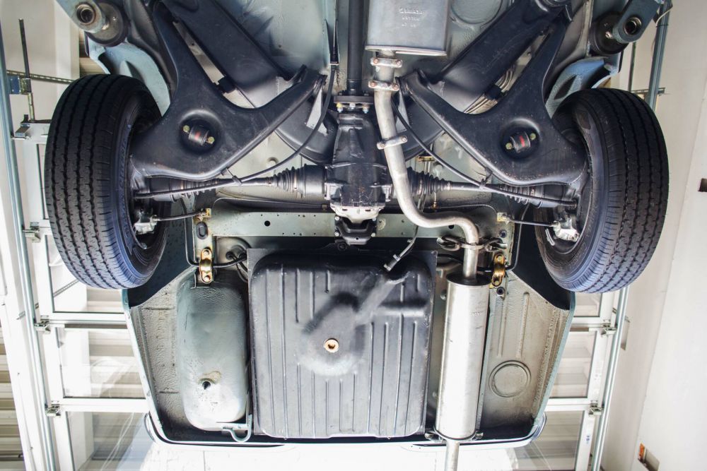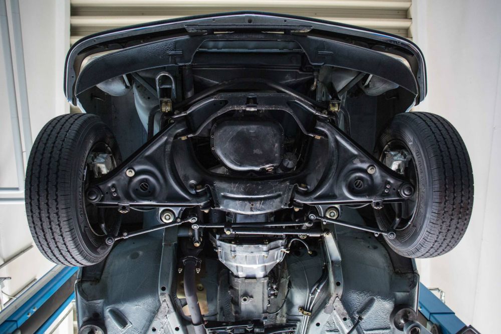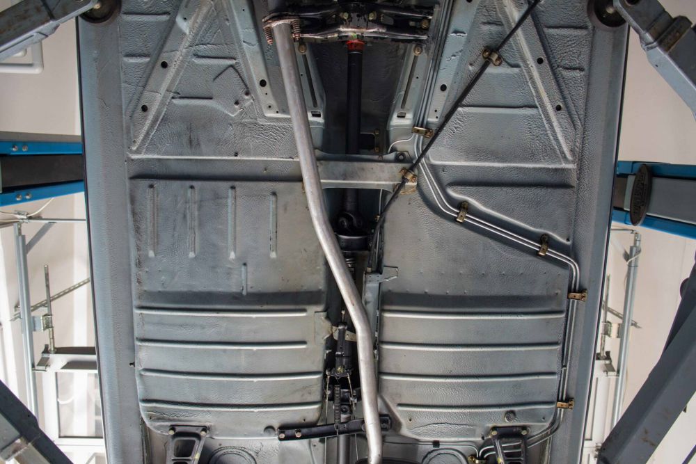 Vor über 10 Jahren investierte der damalige Eigentümer knapp 10.000,00 EUR in den Unterboden. Sämtliche Lenker, Stabis, Lager, Gummis, Manschetten und die originalen Schrauben wurden ausgetauscht. (was eigentlich gar nicht nötig gewesen wäre, was aber dafür die seriöse Herkunft bestätigt) Die Rechnungen über die Arbeiten sind im original detailliert vorhanden. Als Krönung gönnte man sich noch eine komplette Unterbodenreinigung per Trockeneis um den originalen unverbauten und ungeschweißten, rostfreien Zustand in Szene zu setzen. Zum Abschluß wurde das Fahrzeug dann noch mit transparenten Unterbodenschutz versiegelt, der immer noch seine Wirkung hat.
