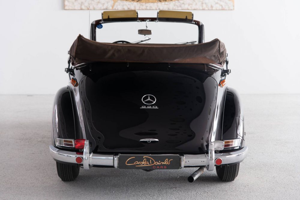 The partial restoration, which took place between 1997 and 1998, included a new paint job, a new ash wood frame and an overhaul of engine and transmission. The brown leather interior with a gorgeous patina was saved in the process and is still in its original condition. The above mentioned work was accompanied by the expert Dipl.-Ing. Heinz Lenz and documented in detail.