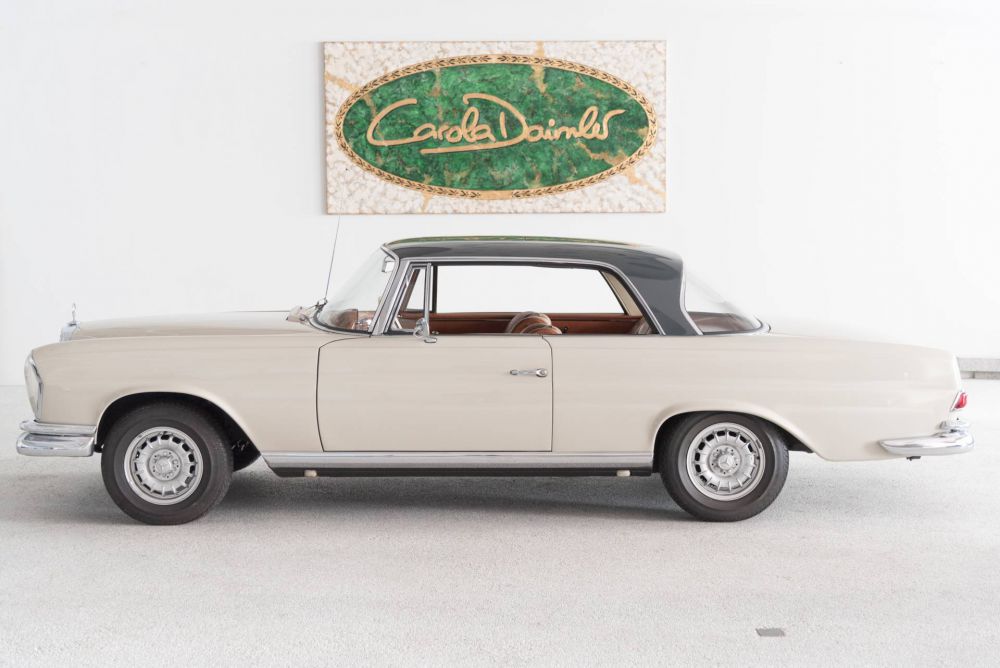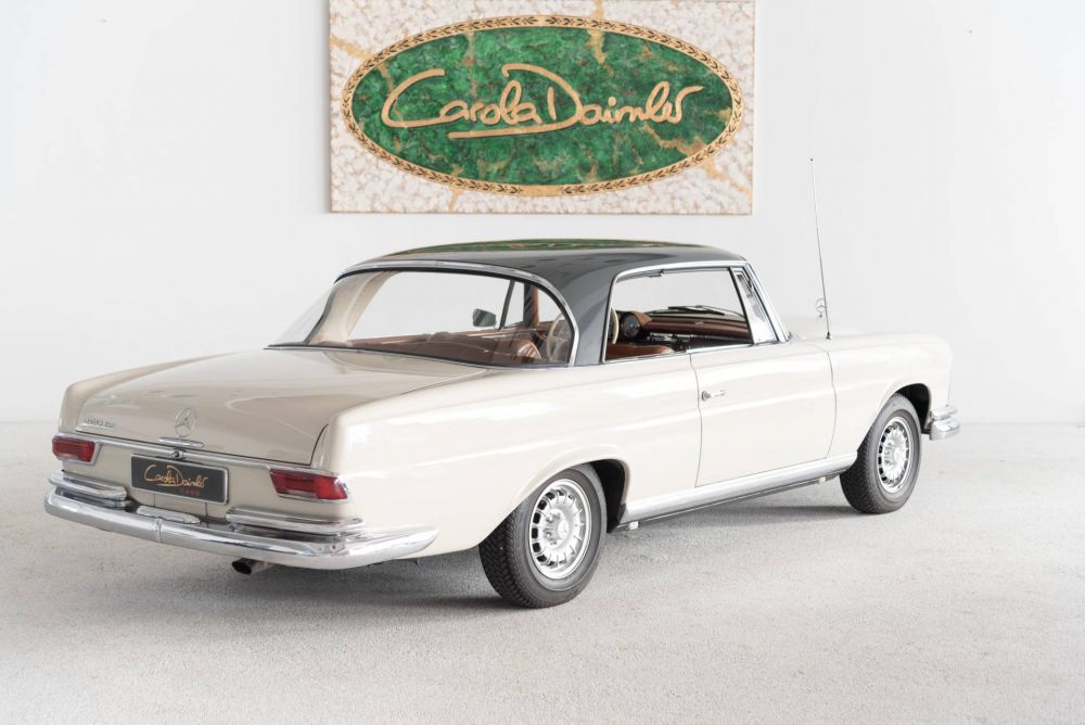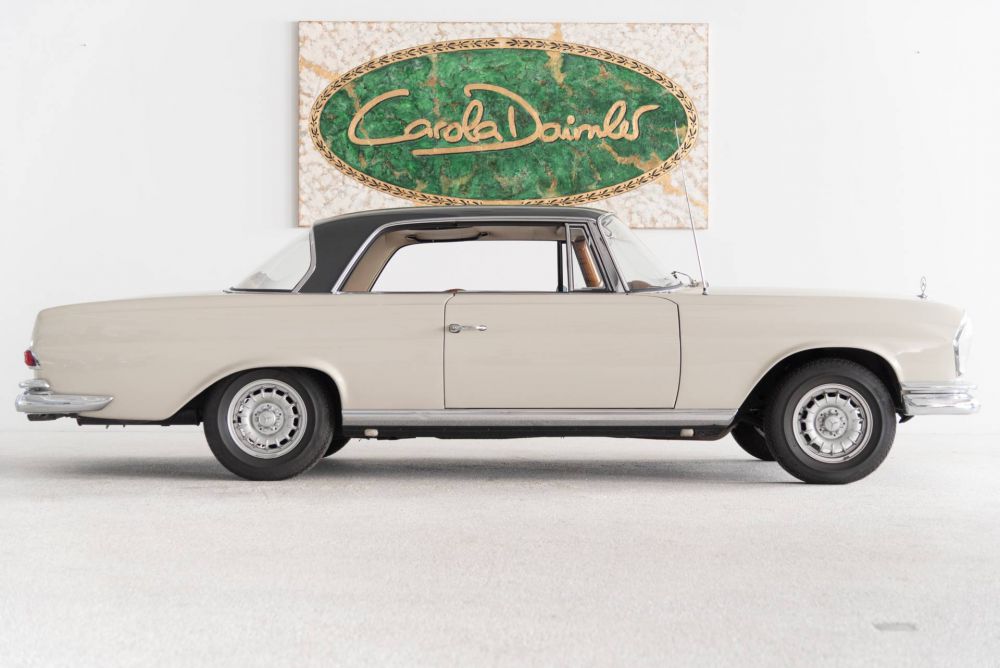 A timeless piece of automotive history is for sale: a Mercedes-Benz 220 SEB Coupé from 1964, which impresses with its beautiful two-tone paintwork in white and grey. The interior in brown leather gives the car a certain charm and the patinated condition of the original interior tells convinces of a caring past.