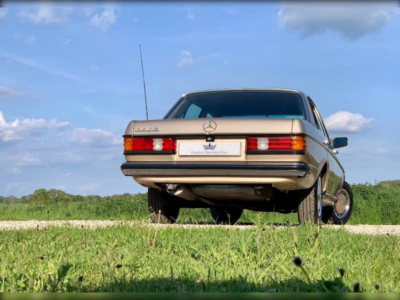 Registered on the 4th of December 1984, this superb Mercedes-Benz W123 series 230E has only 5 previous owners. Supplied new by Woking Motors of Hersham, it was registered to a company and thereafter it is believed to have been bought by the MD of that same company. They owned the car from 1984 until 2019, within which time the car was kept in dry storage from 2012 until 2019. Having covered 98k miles this 230E is supplied with a comprehensive history file. This includes its service history booklet containing 28 service stamps, a large file of receipts for extensive works carried out during its lifetime with OEM parts obtained, and all MOT certificates dating from 1994. In addition to this the original sales invoice, PDI sheet, owner’s manual & leather wallet/book pack are present. This iconic W123 230E has been subject to a recent & extensive cosmetic & mechanical refurbishment resulting in the car presenting beautifully & driving as it should. Finished in the period 1980s colour of Champagne Gold metallic paint (473) with Date cloth interior, this 230E is extremely smart and exudes all of the qualities that the W123 series are renowned for. The original Blaupunkt Manheim cassette/radio player is present with the car although currently a recently fitted Audio 10 Mercedes Benz CD/radio player resides in its place. Early enquiries are invited & encouraged as this 230E is a late model W123 that has received recent comprehensive works in addition to its very comprehensive history. Not to be confused with the average examples available, this car would be a very worthy addition to the most fastidious of collectors. Probably one of the best if not the best example on sale in the UK currently.