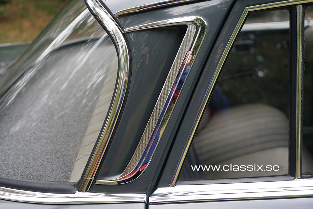 Exterior: This car came from Italy so the body is very much rust free. However, there are some scratches and smaller dents to be seen. The chrome is very good, but also here some smaller dents can be seen. Most likely from keeping all those little Fiats away from the Mercedes body. The grey colour (DB 190) is very elegant for this big car and the clear glass makes the lighter grey interior very visible. Rolling on good tyres with a thin white stripe. The underneath looks nice and solid. No signs of any previous welding.
