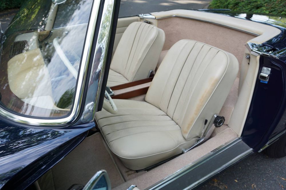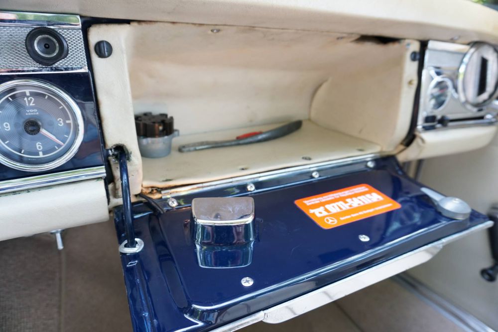The light and airy lines of the SL continue to inspire enthusiasm to this day. The same applies to its powerful in-line six-cylinder engine, which contributes to the driving pleasure of the SL. Especially when they do their job so flawlessly and with such a powerful sound, like the Mercedes-Benz 230 SL (registration no. #0054031) offered by me on behalf of a customer in the elegant colour combination of Dark Blue 332 on the outside and Cream Leather on the inside.
