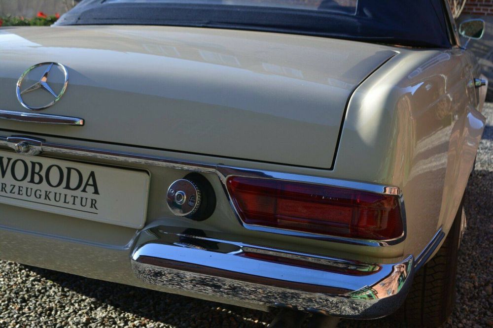 Dieses Fahrzeug wurde 2006 aus den USA eingeführt und technisch wie optisch restauriert. Die Pagode ist sehr original und ungeschweißt. Sie ist in einem technisch wie optisch sehr schönen Zustand und sofort einsatzbereit. Die letzten Besitzer sind viele und auch lange Oldtimerrallys mit diesem Wagen erfolgreich und störungsfrei gefahren. Vor Auslieferung erhält die Pagode einen 143 Punkte Check in unserem Hause.