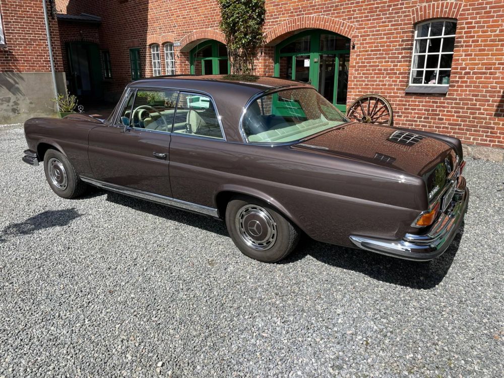 Questa magnifica Mercedes Coupé, immatricolata per la prima volta in Svezia nel 1971, colpisce per l'elegante verniciatura marrone bronzo metallizzato e gli eleganti interni in pelle pergamena. Il motore a 8 cilindri offre una motorizzazione superiore, adatta sia ai viaggi brevi che ai tour più lunghi. Con spazio sufficiente per tutta la famiglia e per i bagagli, questo veicolo offre un'esperienza di viaggio impareggiabile.