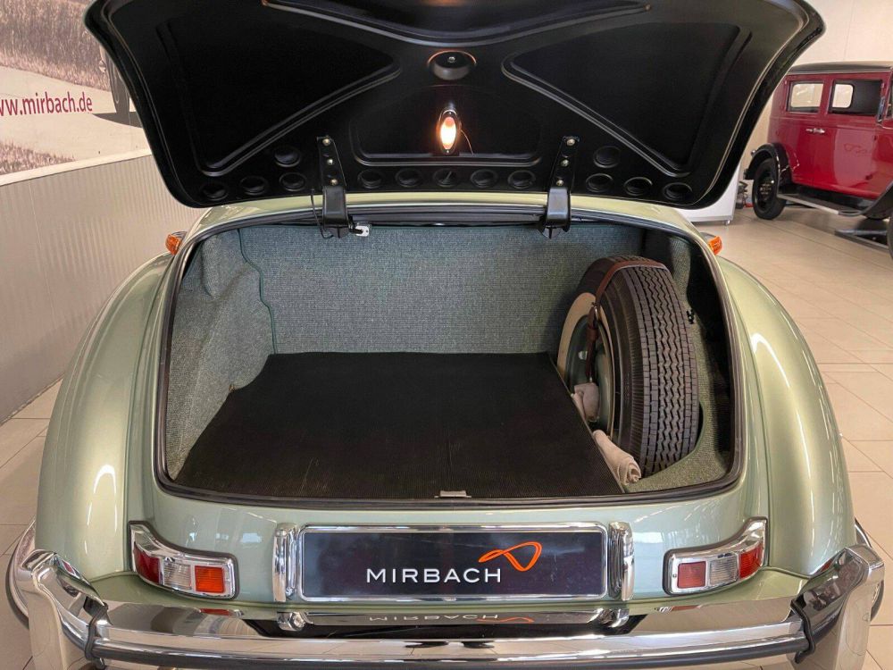 Die intern W 188 genannten zweitürigen Wagen wurden im Oktober 1951 auf dem Salon de l’Automobile in Paris vorgestellt. - - Die Mercedes-Benz 300 S haben einen gegenüber dem Limousinen-Chassis 15 cm kürzeren Radstand. Mit insgesamt 760 produzierten Einheiten ist ein W 188 seltener als der berühmte „Flügeltürer“ 300 SL. Über den gesamten Produktionszeitraum hinweg war der W 188 das teuerste Fahrzeug im Mercedes-Programm. - - Zusammen mit der 300er Limousine waren diese Modelle die letzten Pkw von Daimler-Benz, die noch auf einem Rahmen (Fahrgestell) aufbauten. - - Die Fahrzeuge waren als Coupé, Cabriolet A und Roadster lieferbar. Sie hatten den Sechszylindermotor der W 186-Limousine mit 2996 cm³ Hubraum, der mit drei Solex-Vergasern nun 150 PS (110 kW) entwickelte und die Fahrzeuge bis auf 175 km/h beschleunigte. Von Juni 1952 bis Juli 1955 wurden 141 Roadster (voll versenkbares, einfaches Verdeck ohne Sturmbügel hergestellt. - - Unser 300 S Roadster wurde komplett (Karosserie, Motor, Getriebe, Aggregate) restauriert und neu aufgebaut. Ein Classic Data Gutachten aus dem September 2013 bescheinigt einen Gesamtzustand 1-. - - --- - - Unser Angebot umfasst eine einjährige Oldtimer-Garantie ohne Aufpreis. - - Probefahrt und Sichtprüfung des Fahrzeuges auf der Hebebühne sind selbstverständlich nach kurzer Absprache möglich. - - Als versierter Fachbetrieb verfügen wir über eine eigene Werkstatt. Unser erfahrenes und speziell geschultes Mechaniker-Team steht bereit für Service, Reparaturen und individuelle Änderungswünsche am Fahrzeug. - - Wir freuen uns auf Sie!
